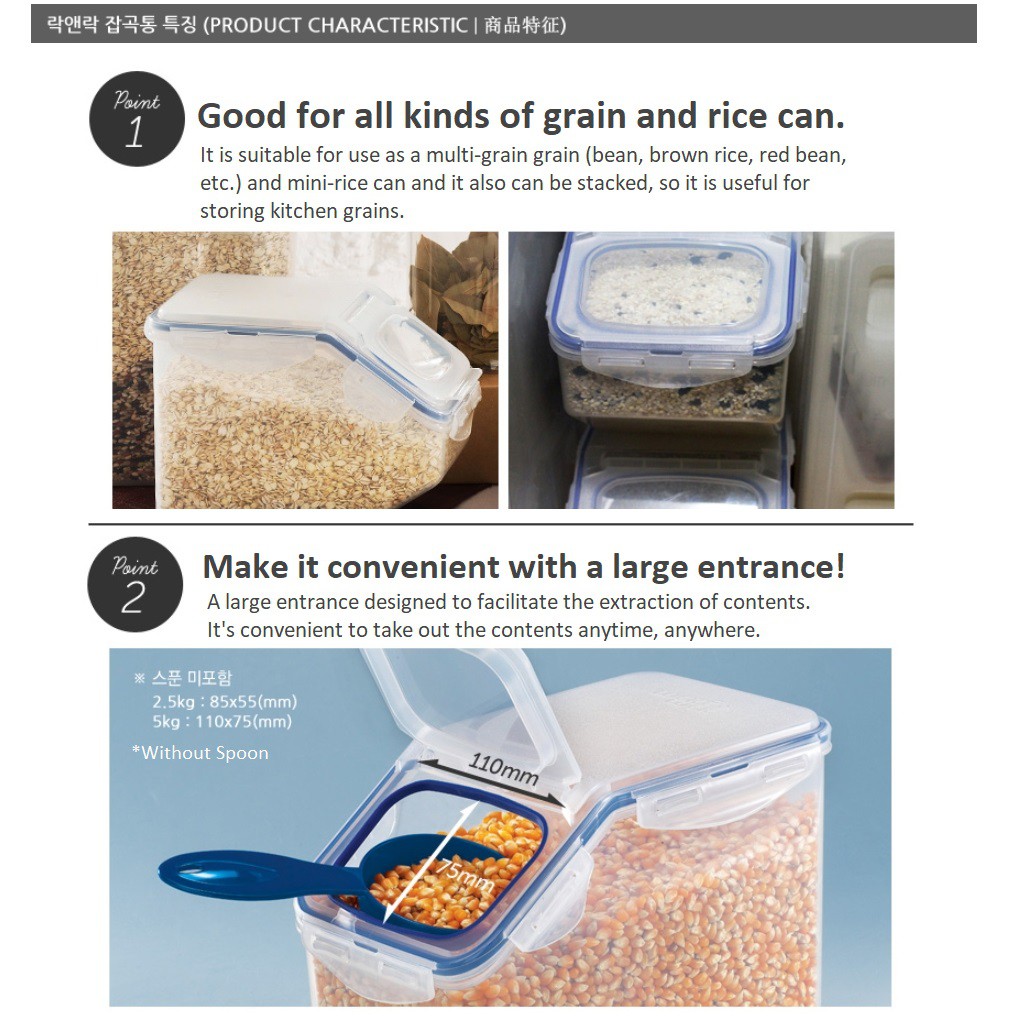 [LOCK&LOCK] HPL700 5L, 2.5L Grain Container Candy Rice Flour Cereal Pet Food