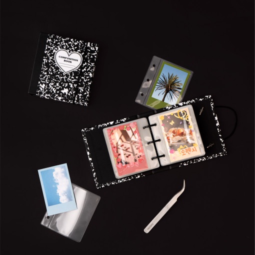 [LUCALAB NEW] 3-Ring Black Composition Binder, Korean Photocard Binder HARD COVER, PVC INNER SLEEVES, Photocard Album Lucalab Binder