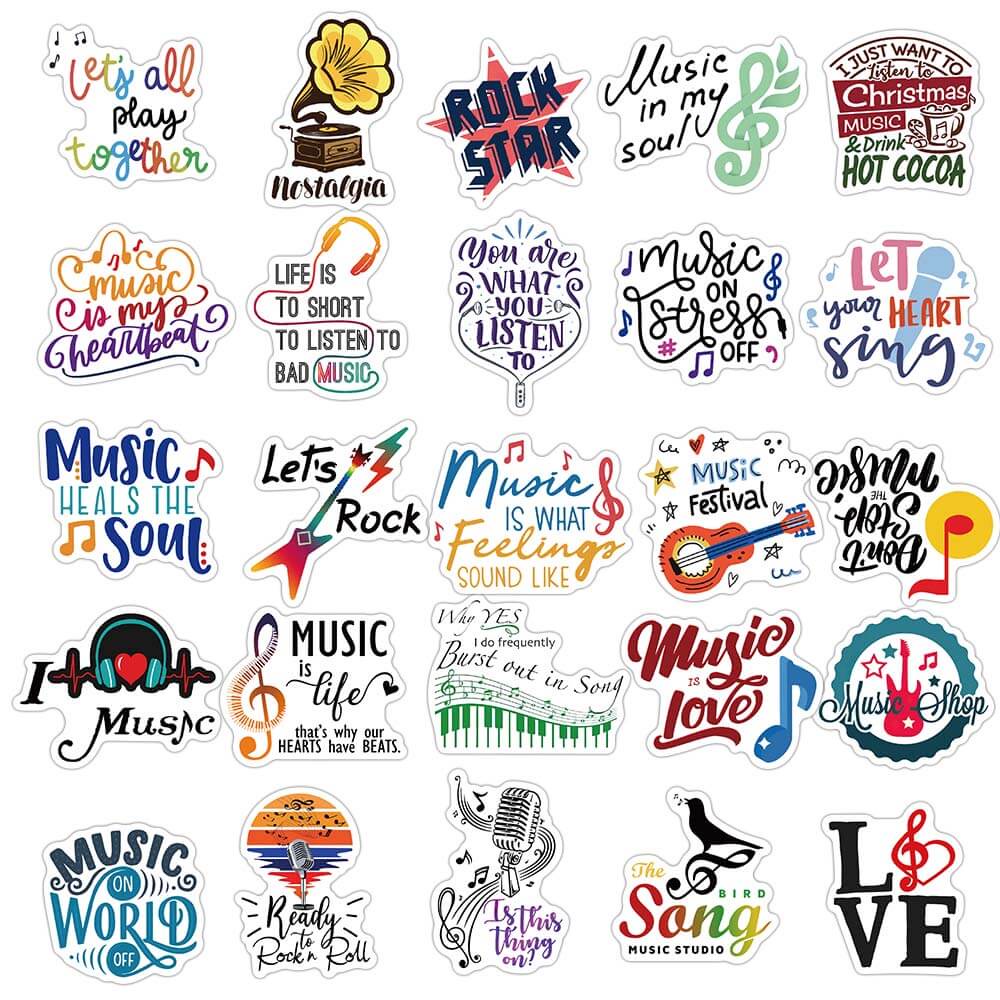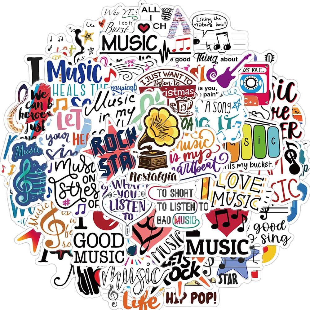 [Large Sticker]50pcs Music Stickers for Guitar Laptop Luggage Skateboard Waterproof Sticker