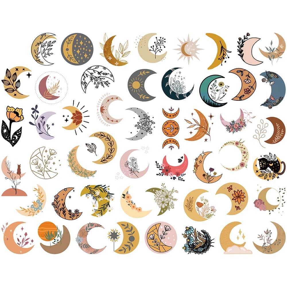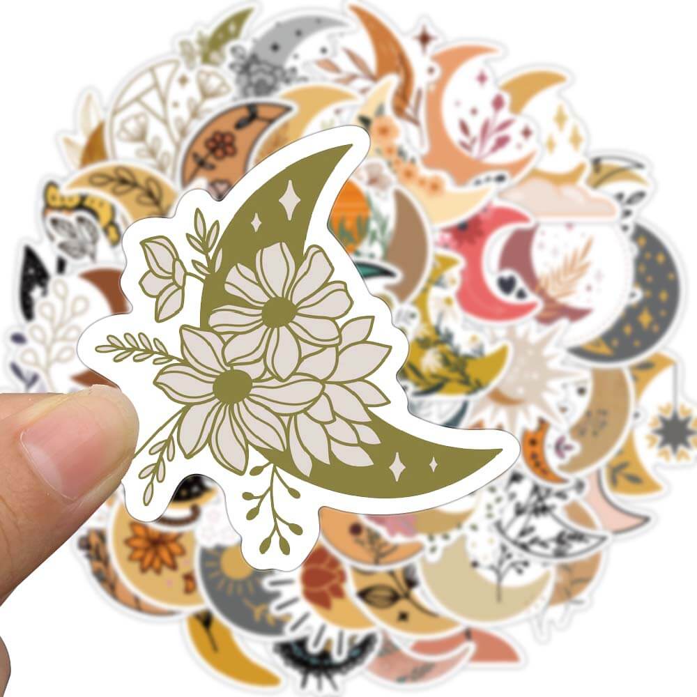 [Large Stickers]50PCS Cute Bohemian Moon Flowers Stickers Aesthetic Laptop Guitar Phone Scrapbook Luggage Wall Cartoon Sticker Decals