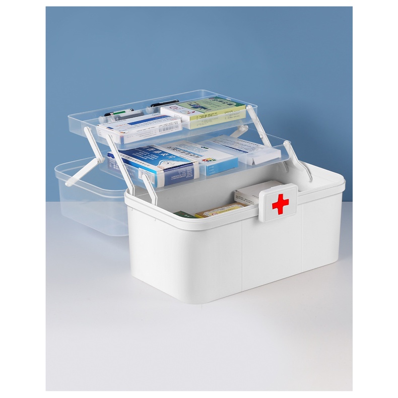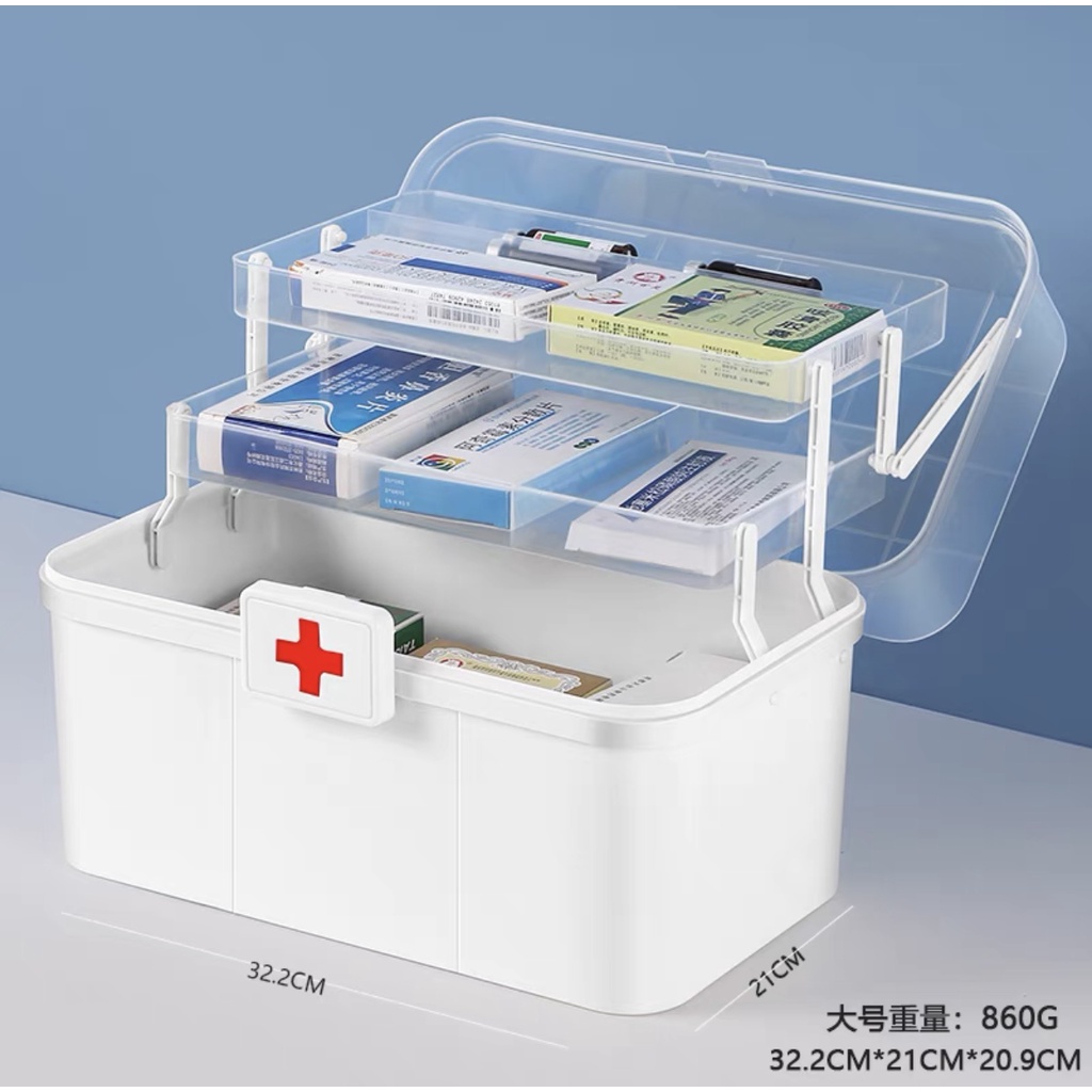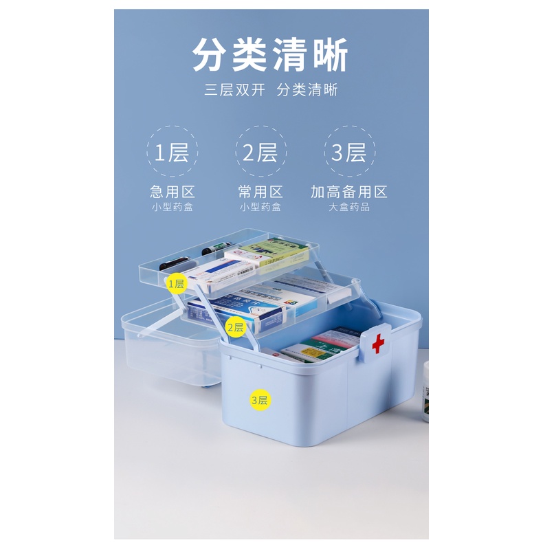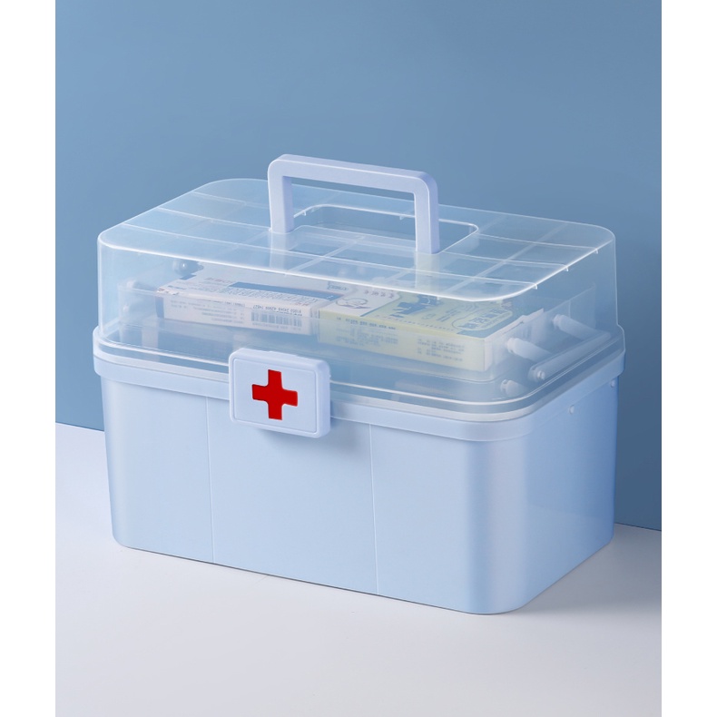 [Local Stock] Multi Level Large White Blue Medical First Aid Household Storage Organiser Box