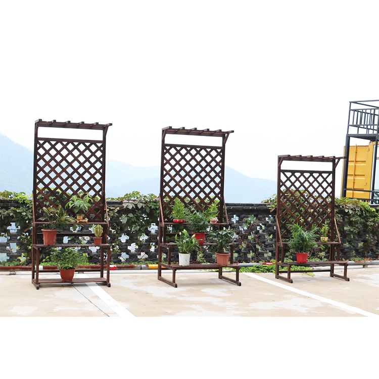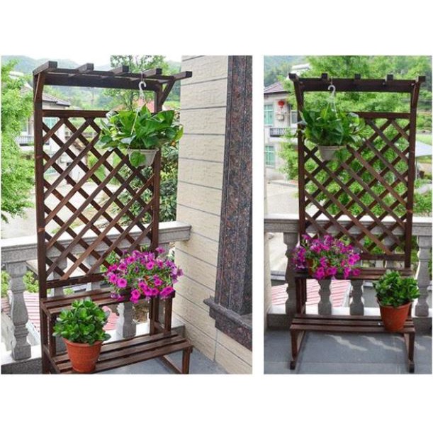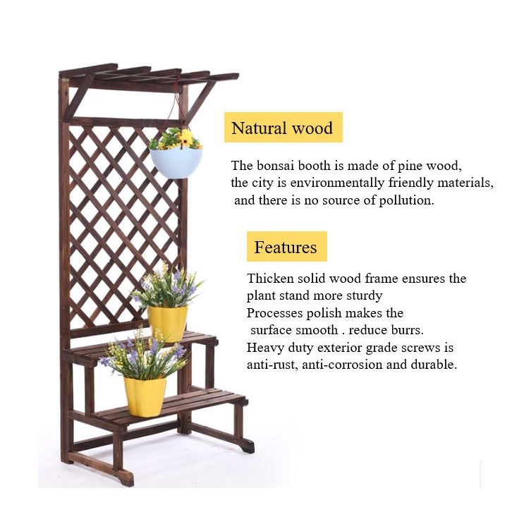[Local Stock]Wooden Plant Rack Rack Outdoor Planter Rack Rain Sun Wood Rack Long Short Tall Grid Garden Rack with Stand
