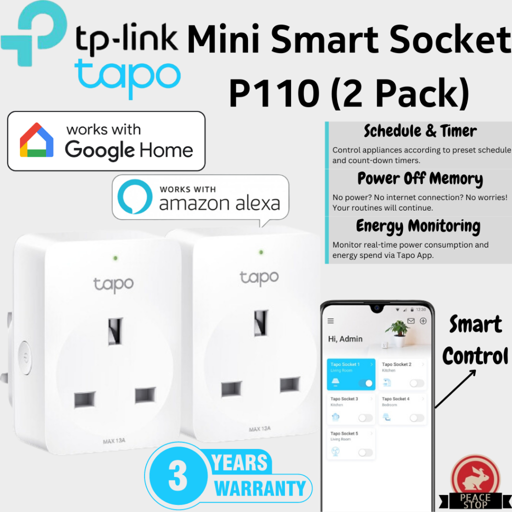 [Local Warranty] 2 PACK Tp Link -Tapo P100 / P110 Mini Smart WiFi Socket Smart Home Power Socket Plug Alexa Google