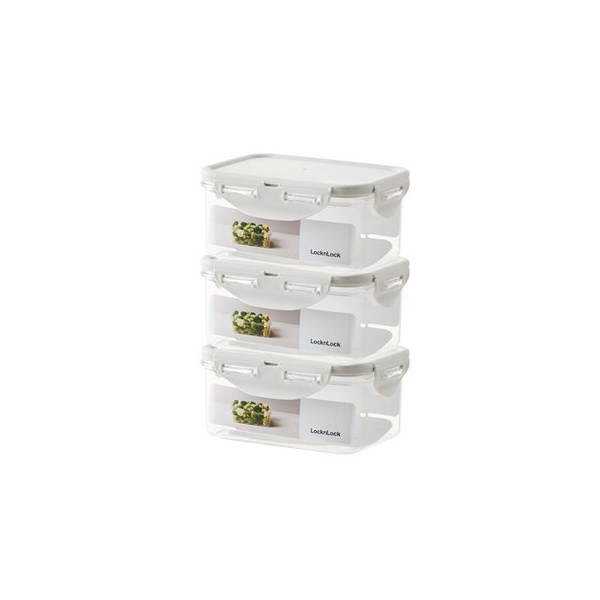 [Lock&Lock] [600ml x 3pcs] [Grey] Stackable Bisfree Bpa-Free Modular Rectangle Airtight Container Storage LocknLock Lock and Lock n Lock