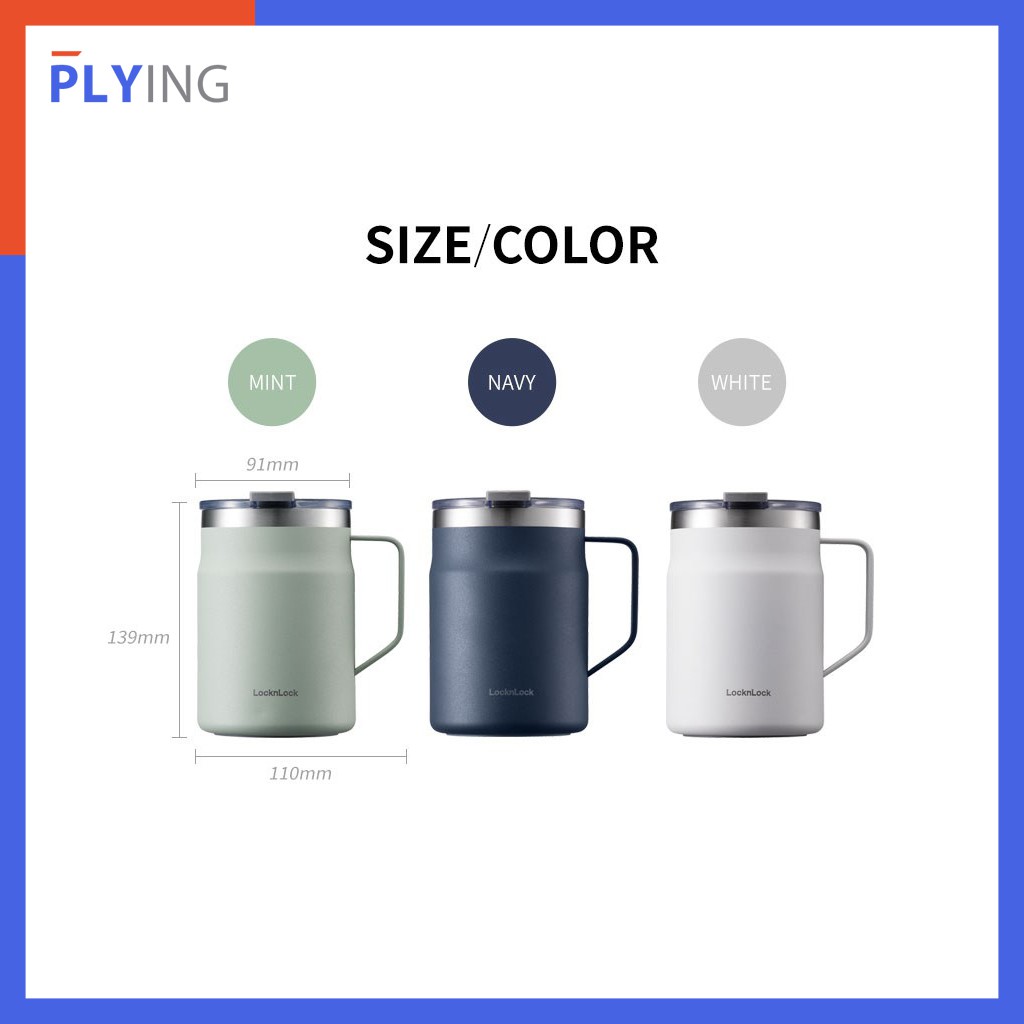 [LocknLock] LOCK & LOCK Metro Mug with Handle & Lid Double Walled Stainless Steel Thermal Insulated 16-Ounce 12-Ounce 3Color(Navy/Mint/White)
