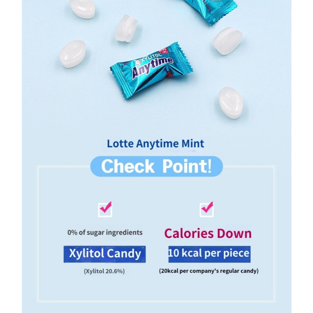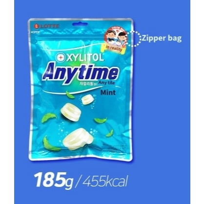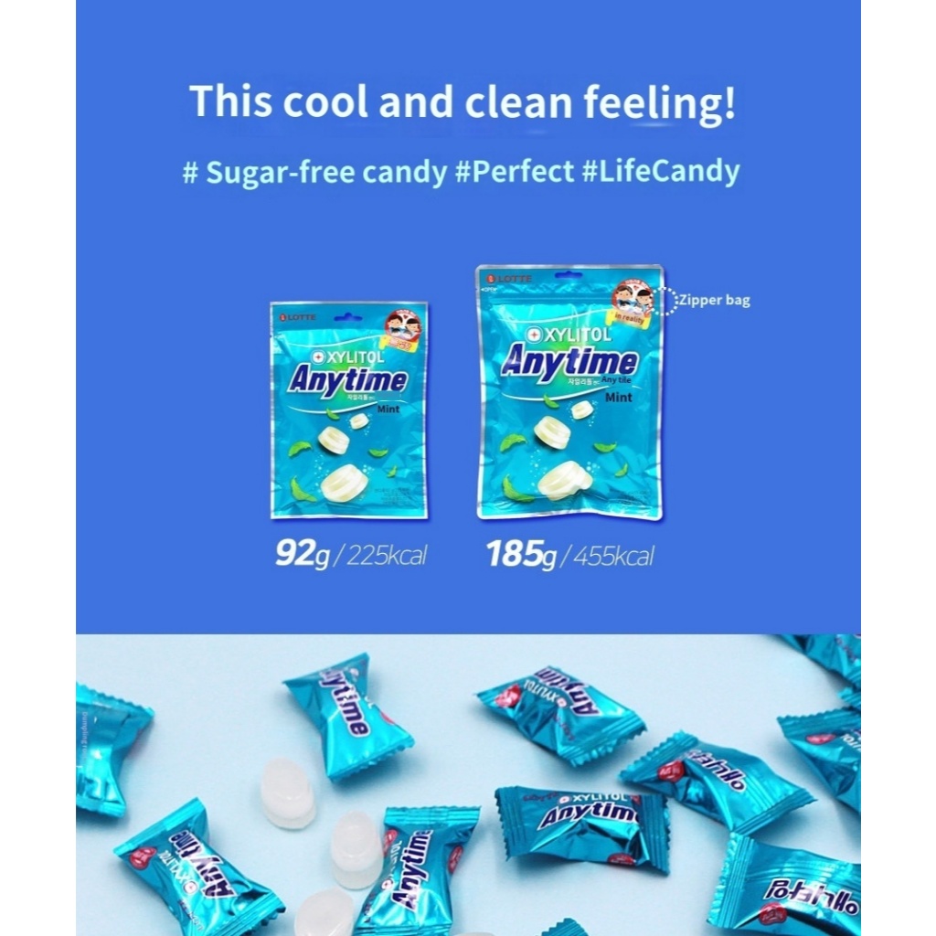 [Lotte] Anytime Xylitol Sugar-Free Milk Mint Flavor 92g / 185g - Fresh, Healthy, Sugar-Free Mint candy