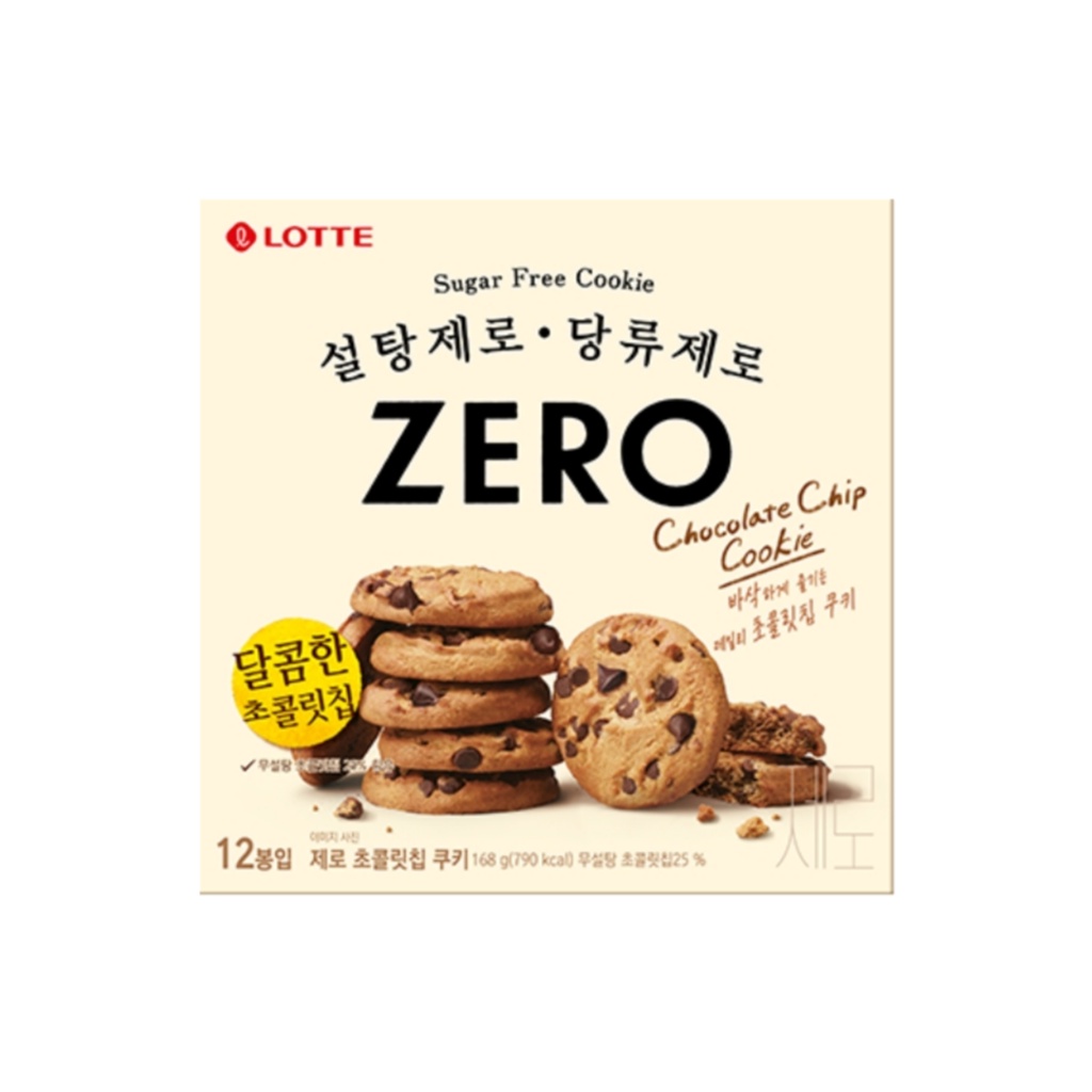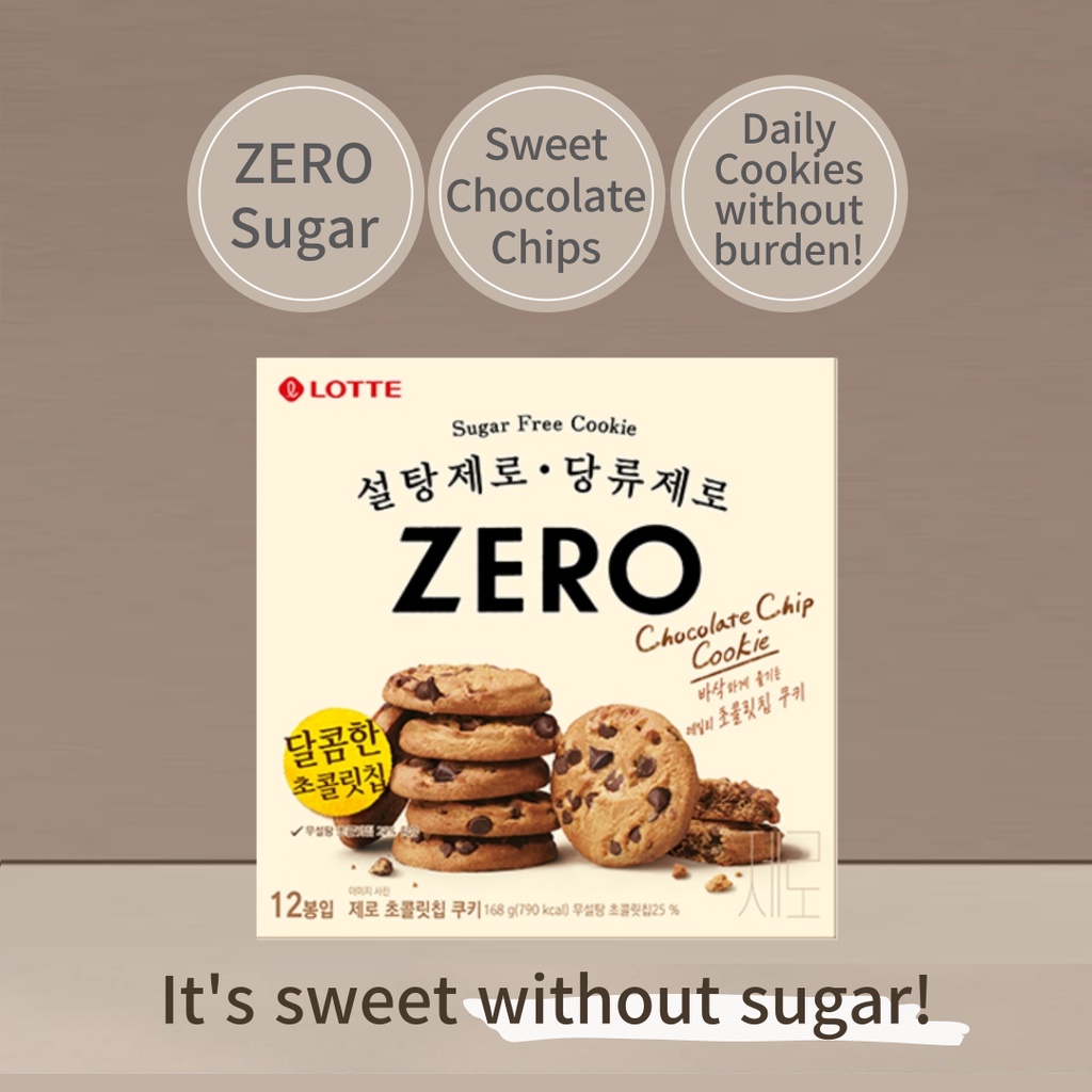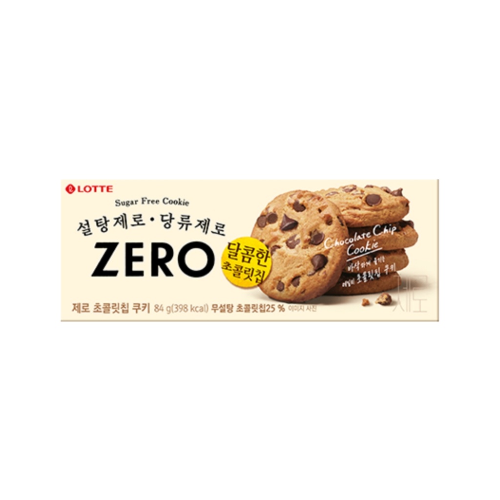 [Lotte] ZERO Chocolate Chip Cookies 164g, 84g Sugar Free Crunchy Cookie Choco Korean Snacks