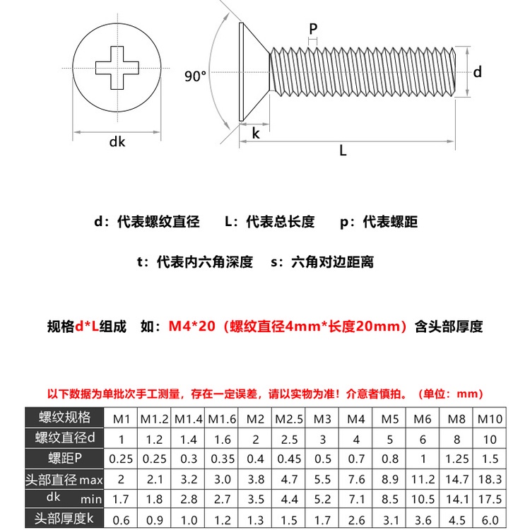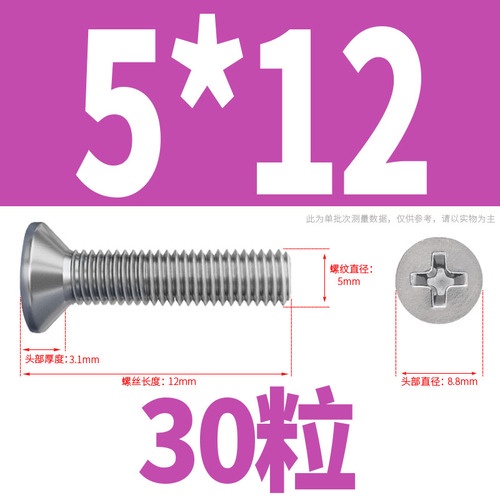 [M3/M4/M5 304 Stainless Steel Countersunk Screw Phillips