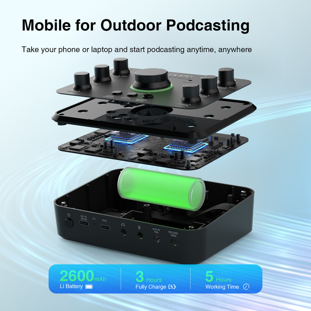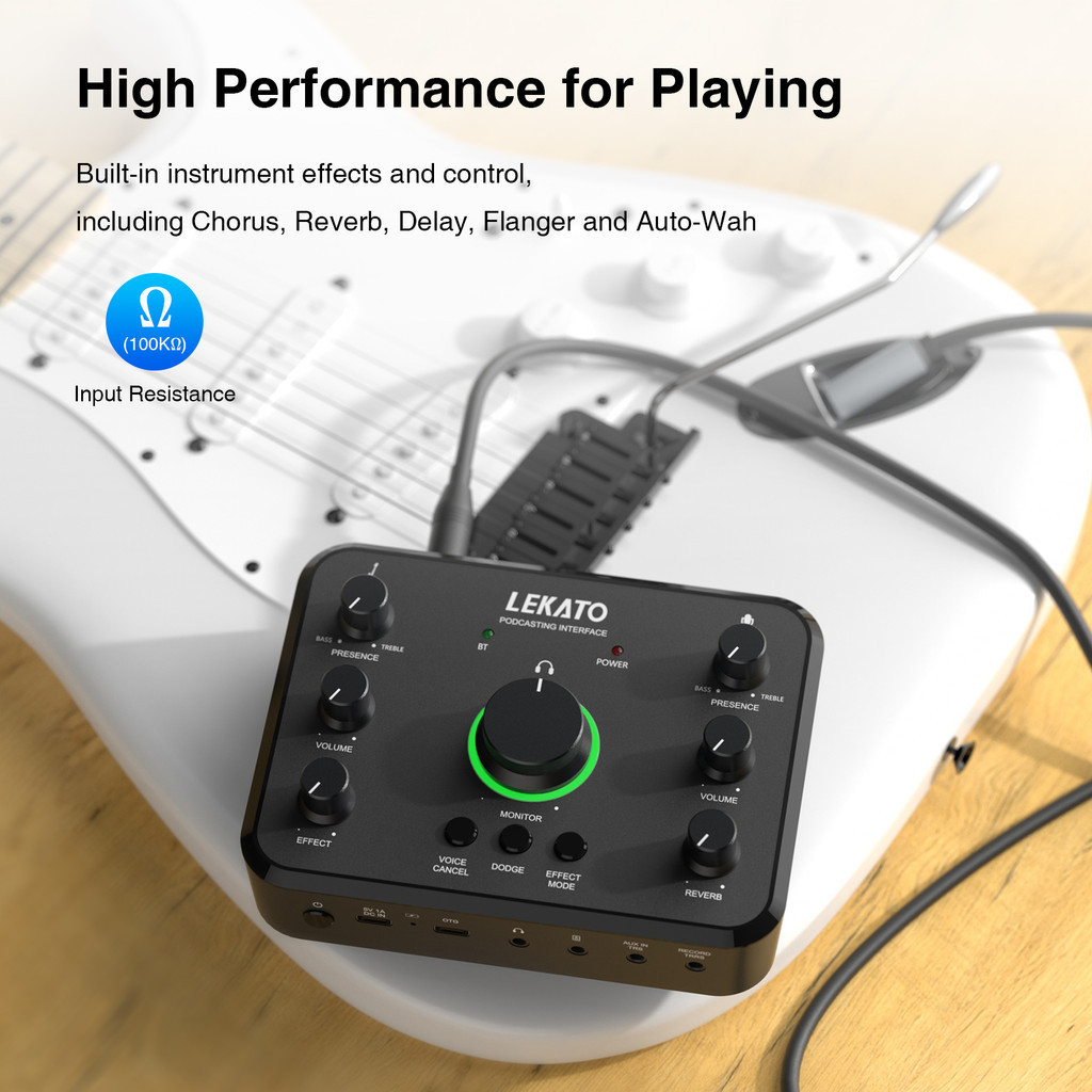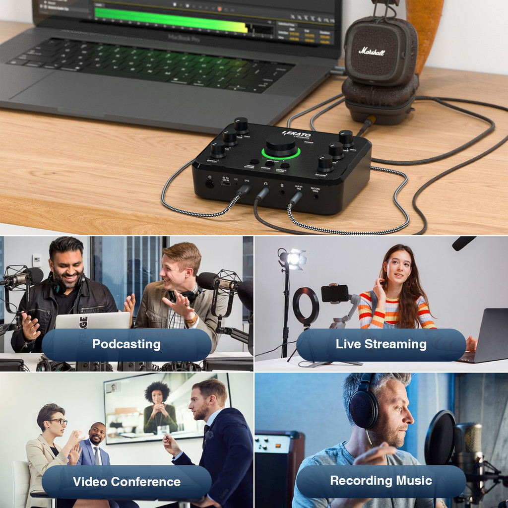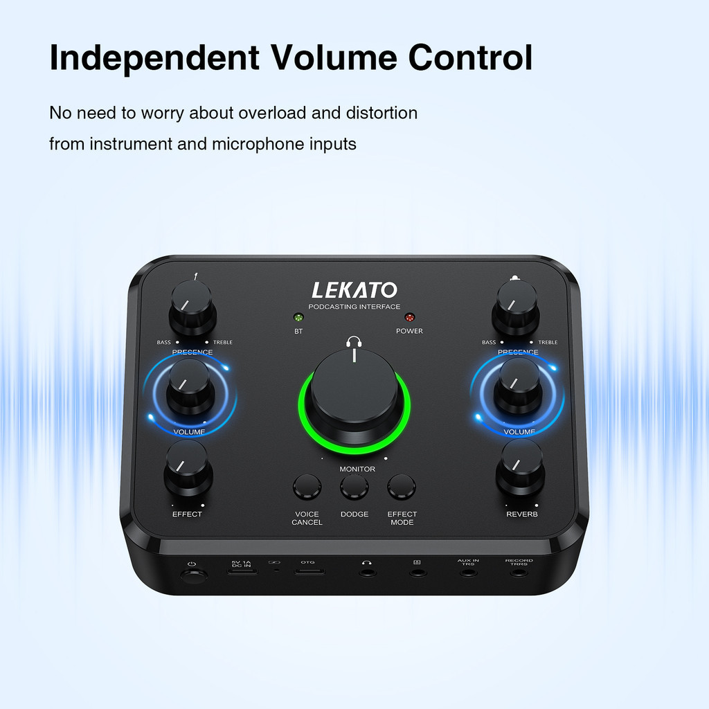[MID YEAR SALE]LEKATO Bluetooth Audio Mixer Rechargeable USB Audio Interface with XLR Mic Hi-Z Line Individual Control for Gaming Vocal Streaming Podcast Recording