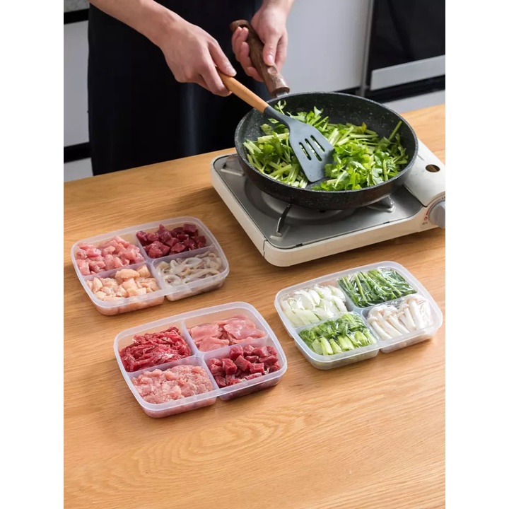 [Made in Japan] Nakaya 710ml Fresh Food Premium Storage Container 4 dividers for meat vegetable baby food container
