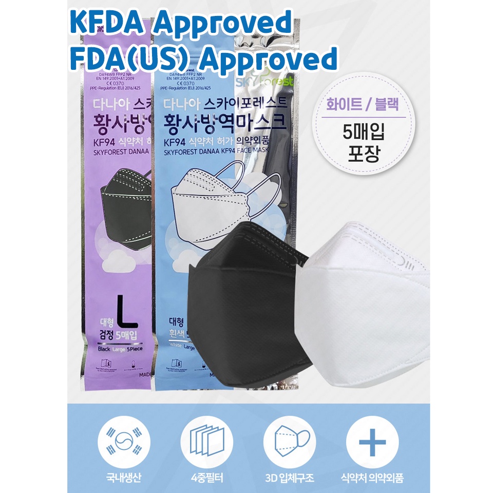 [Made in Korea] KF94 Everyday mask / 4 PLY Disposable Face Masks / 5 pcs in a zip lock