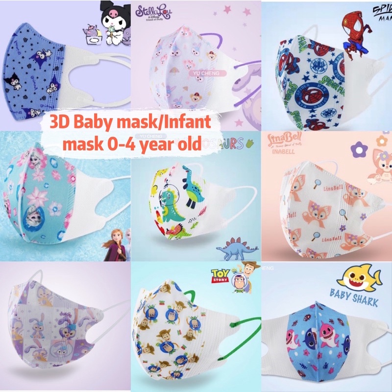 [NEW] 0-4 yearold baby/infand mask /Children 3d 3 PLY /Disposable Mask / Kids 3D Mask (10pcs),BFE>99%/READY SOCK