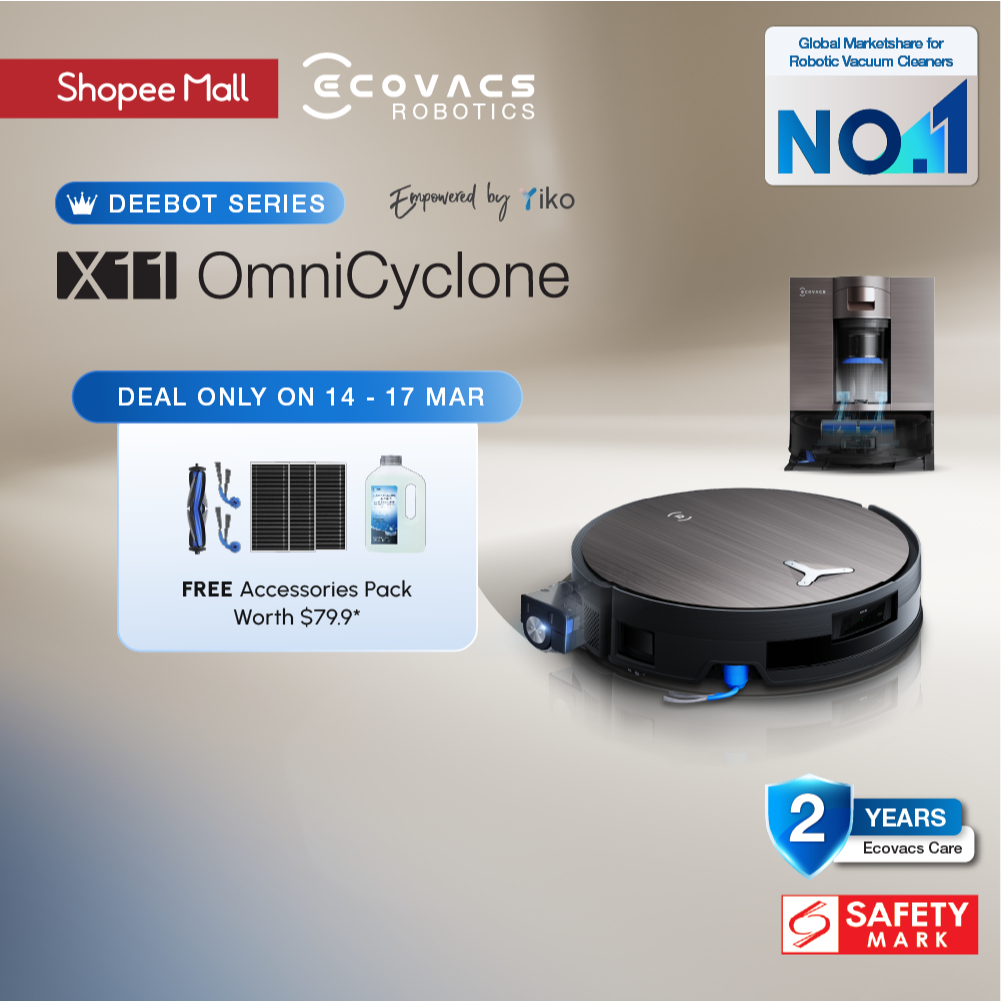 [NEW] ECOVACS DEEBOT X11 OmniCyclone Robot Vacuum |19500PA BLAST™|PowerBoost Charge| OZMO ROLLER™ Mop 2.0| 75°C Hot Wash