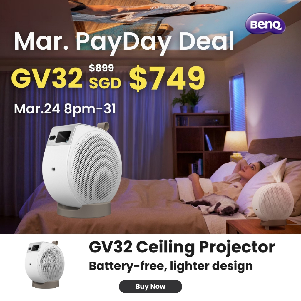 BenQ GV32 FHD Ceiling Projector 500lm, 135° Rotation, Dolby Audio+Woofer, Google TV, Airplay, 3 Year Warranty