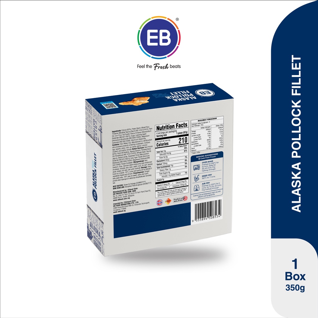 [New Launch] Alaska Pollock Fillet (350gm) | EB Food | Halal certified | Frozen Food