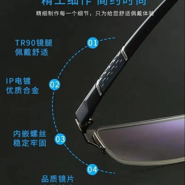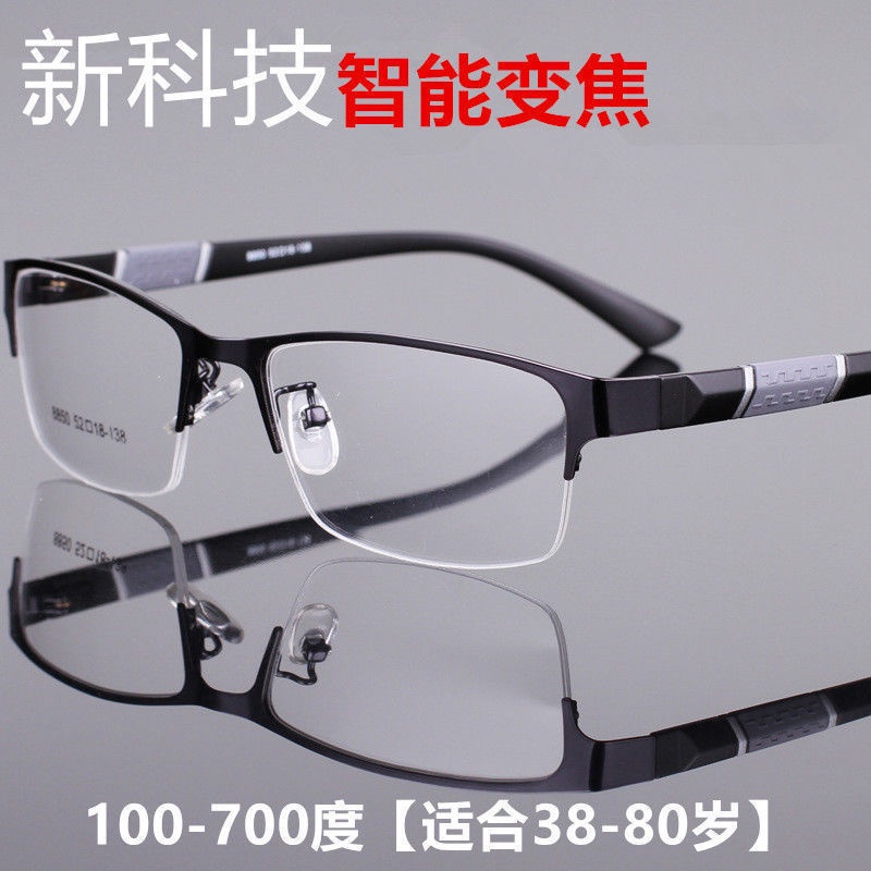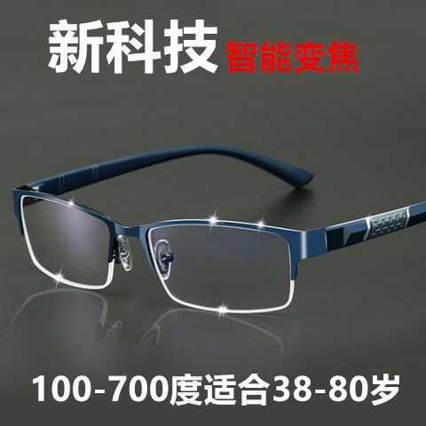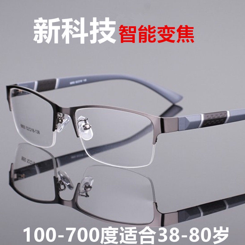 [New Technology] 100-700 Degree Smart Zoom Reading Glasses Distance Near Two Uses Men Women Style Blue-Ray Metal Half Frame