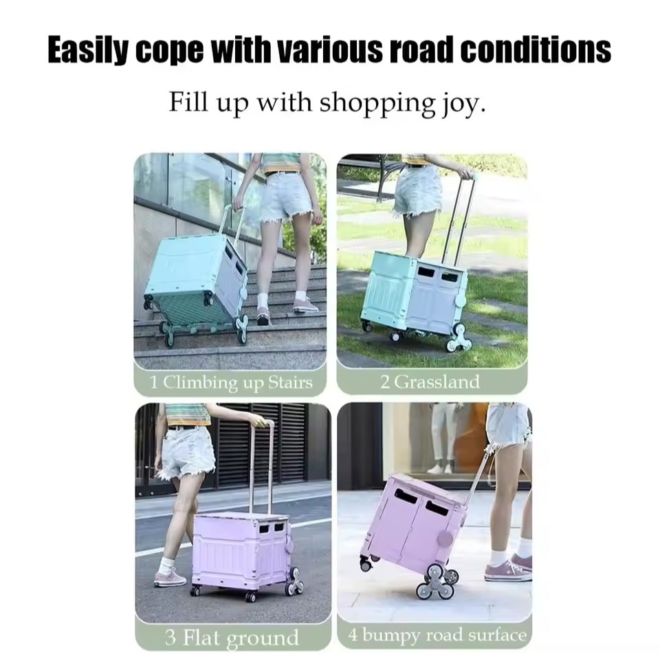 [Next Day Fast]Multifunctional Folding Shopping Cart / Large Capacity Utility Cart / Foldable Trolley Stairs Climb Wheel