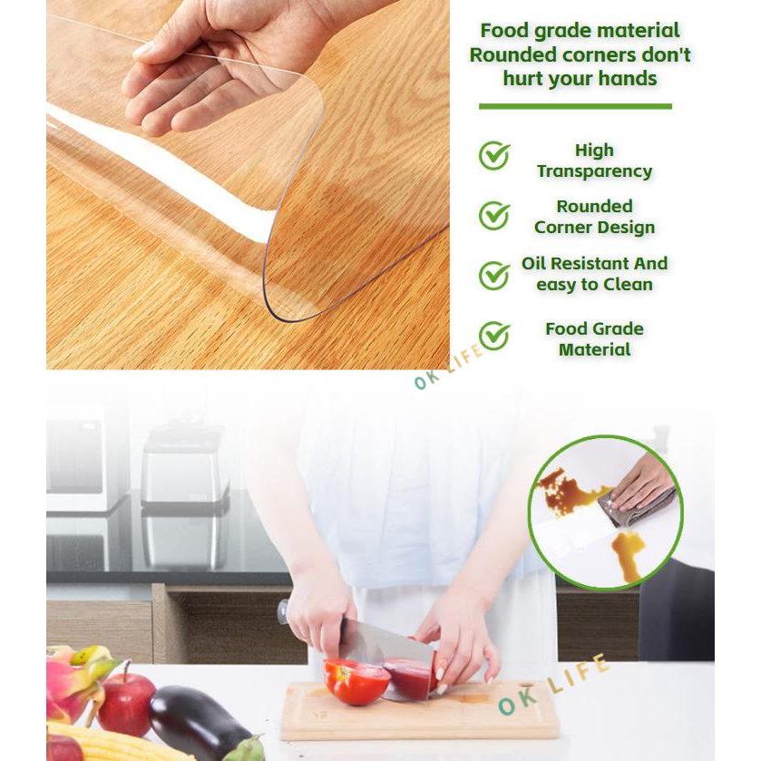 [OKLIFE.SG]Food Grade PVC Transparent Table Mat 1.5mm Thickness - Soft Glass Table Mat for Table - Water Proof Table Mat