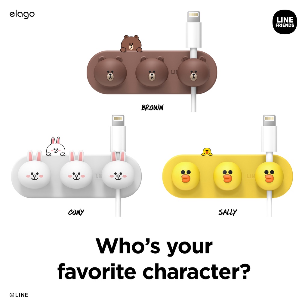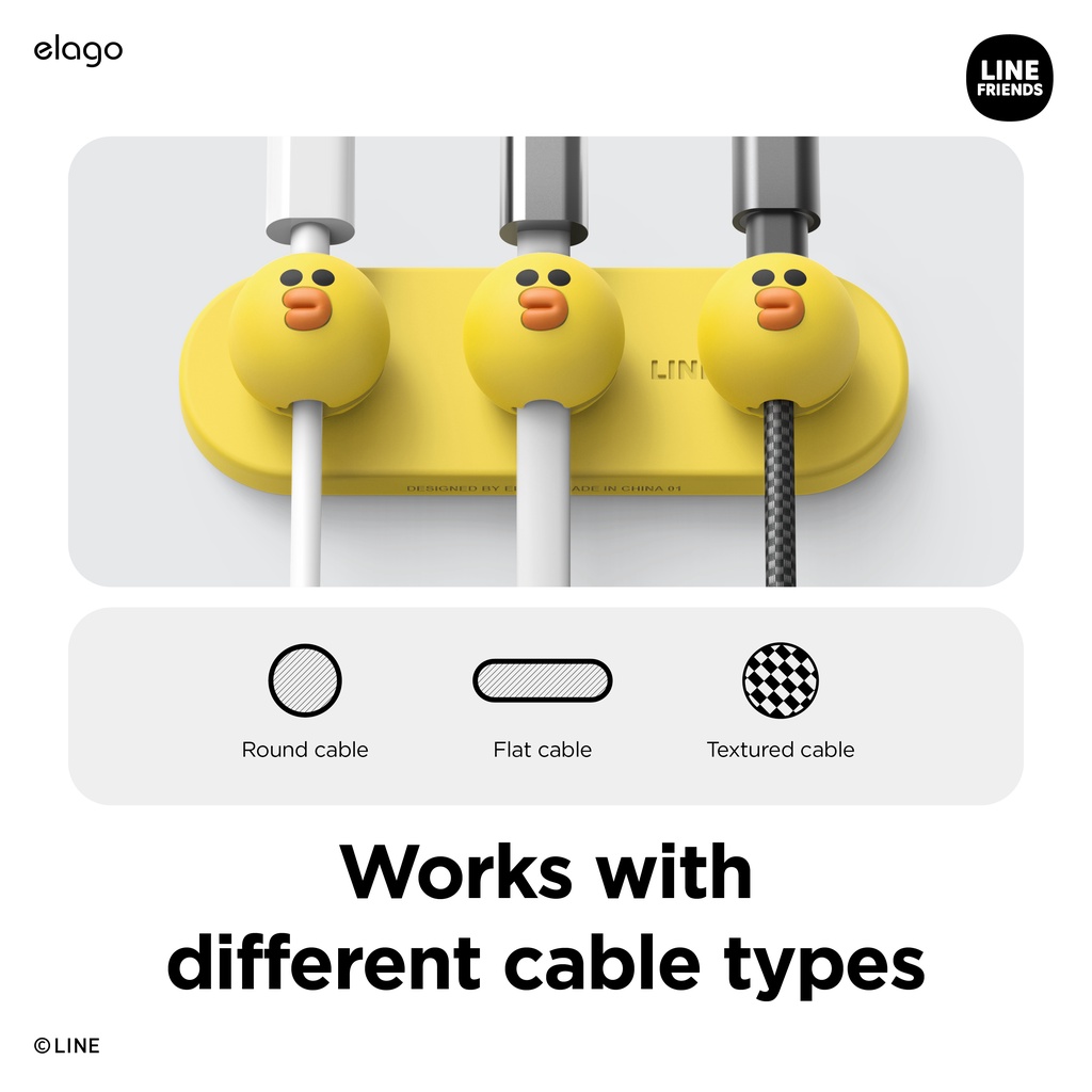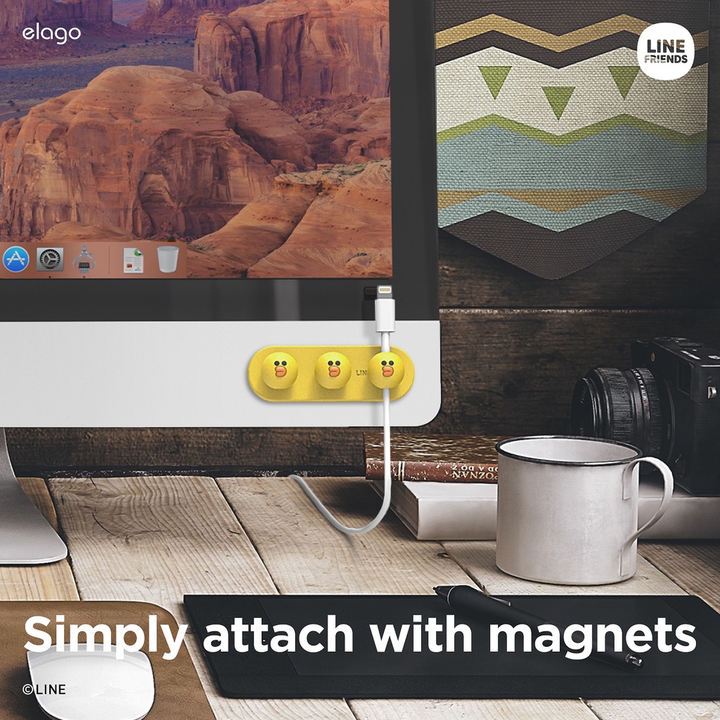 [Official Merchandise] elago | LINE Friends B&F Collection Magnetic Cable Management Buttons, Magnetic Cable Holder, Powerful Magnets, Reusable Sticker Attaches to Surface