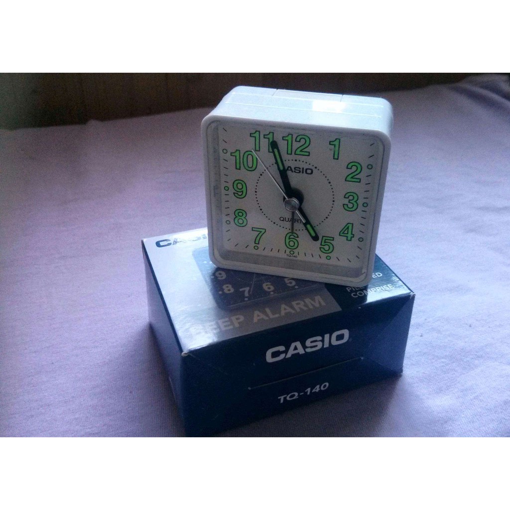 [Original] Casio TQ-140-7D Quartz Analog White Square Classic Small Alarm Clock