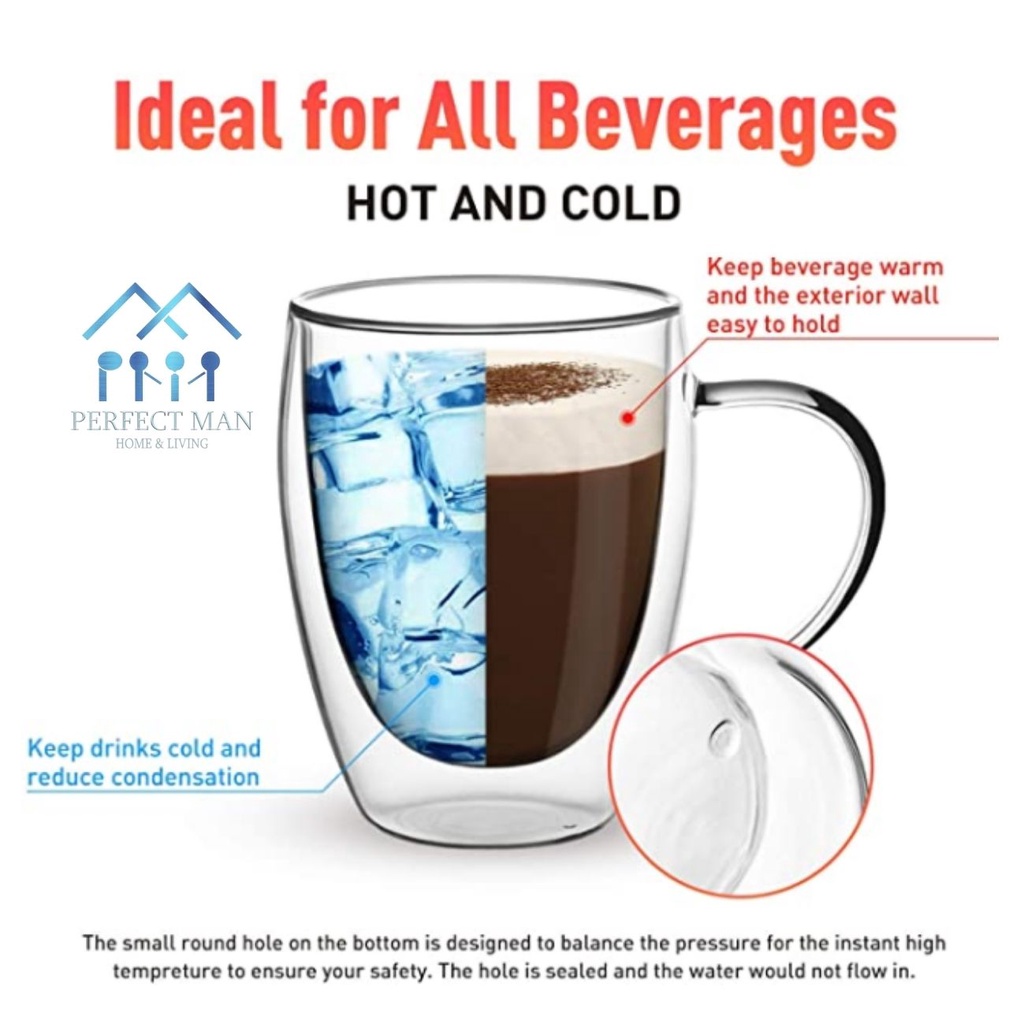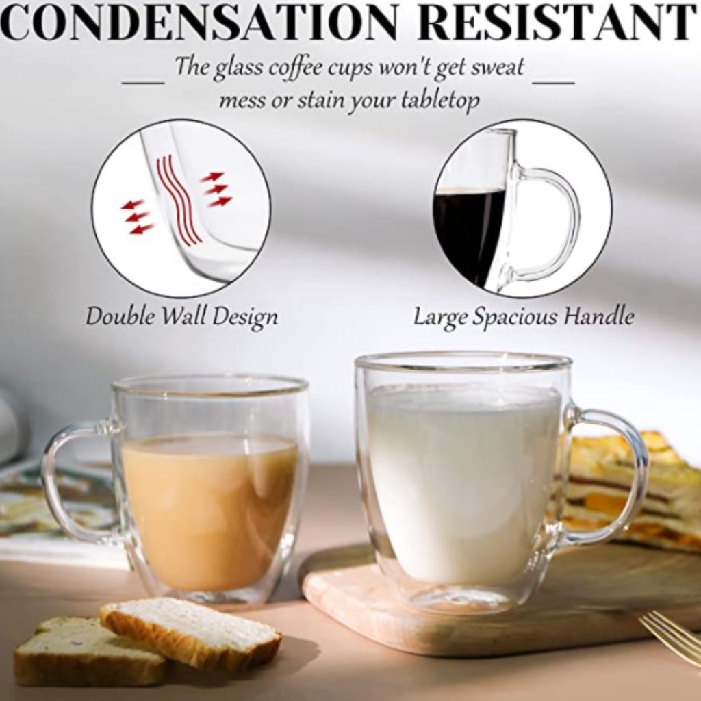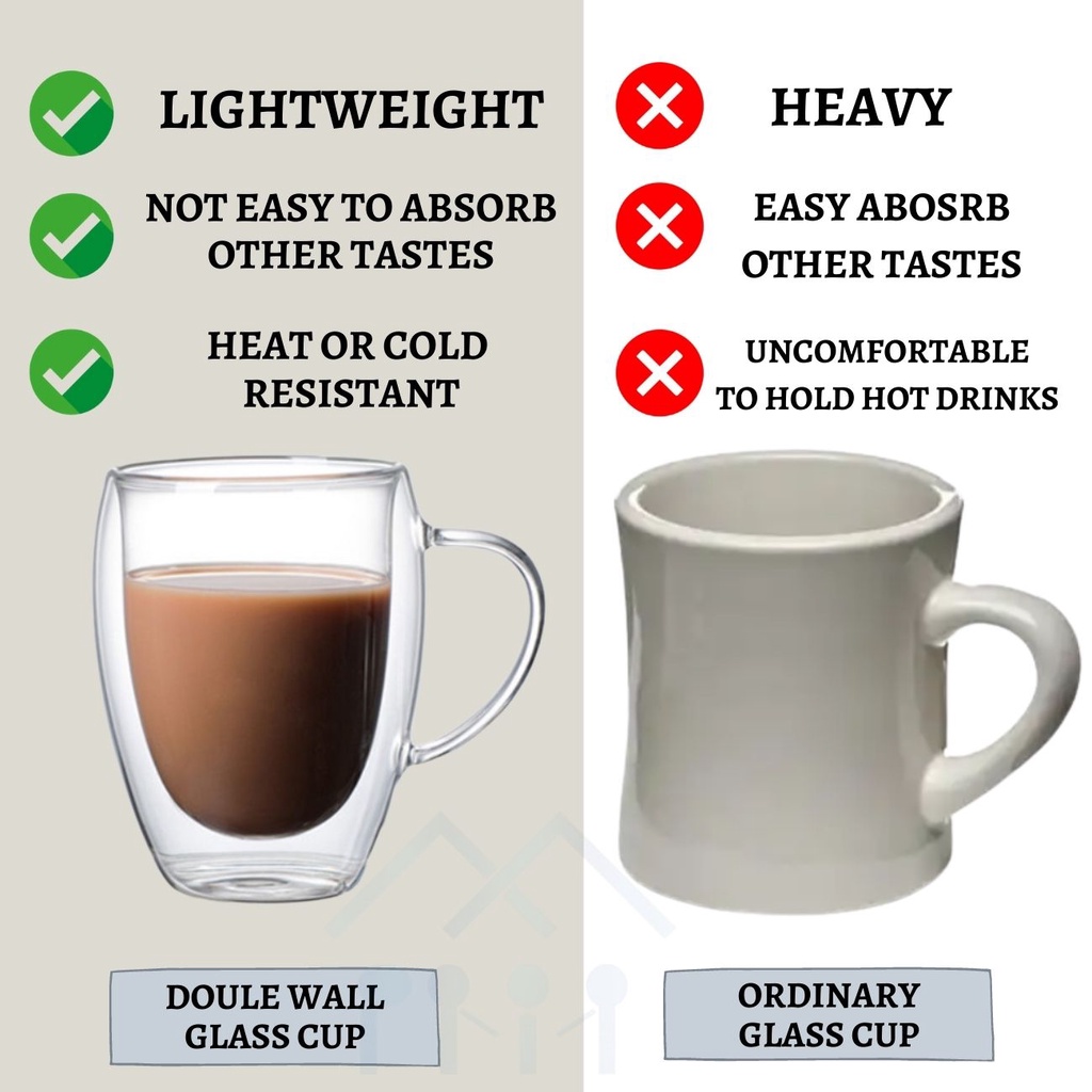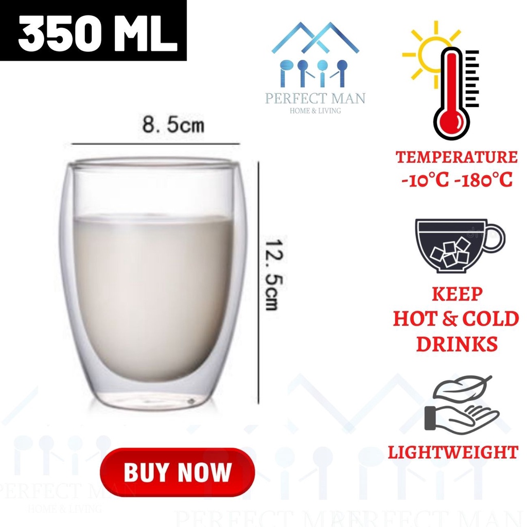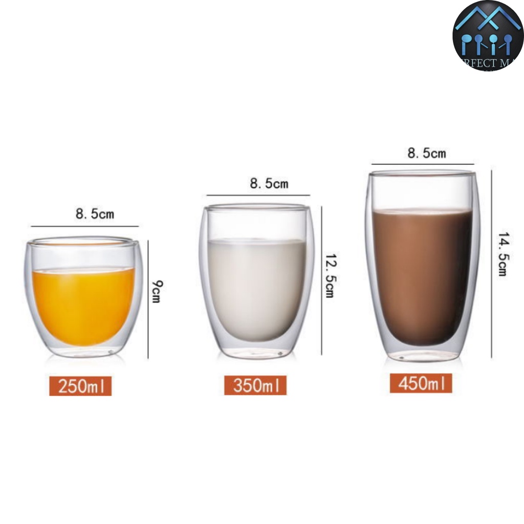 [PM] Double Wall Glass Cup/Coffee Cup/Tea Cup Heat Resistant 250ML/350ML/450ML