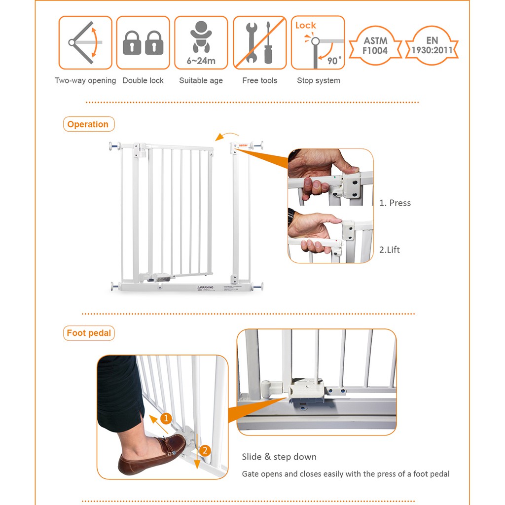 [Passed Safety Standards] Demby Handsfree Safety Door Gate 2 Ways Opening (ESG67) Auto Swing Close
