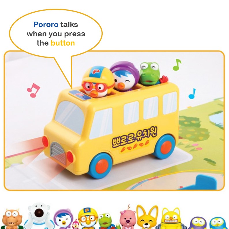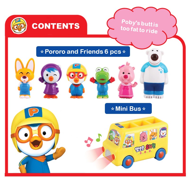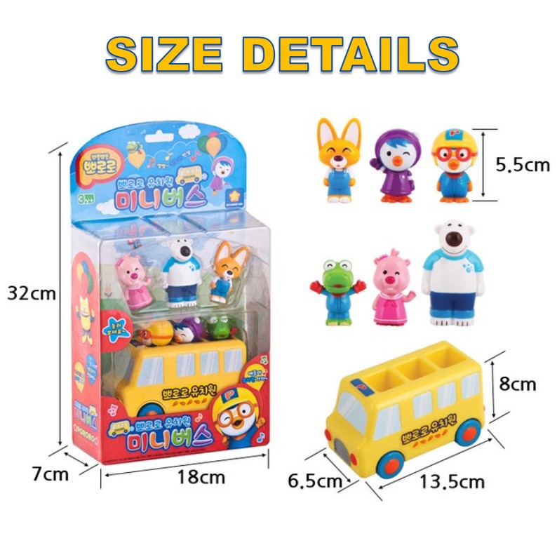 [Pororo] Kindergarten Mini Bus Pororo and Friends / Pororo Action Figure / Kids Bus Toy / Birthday Cake Topper Decoration Figure / Christmas Gift for Kids X-Mas Gift Set