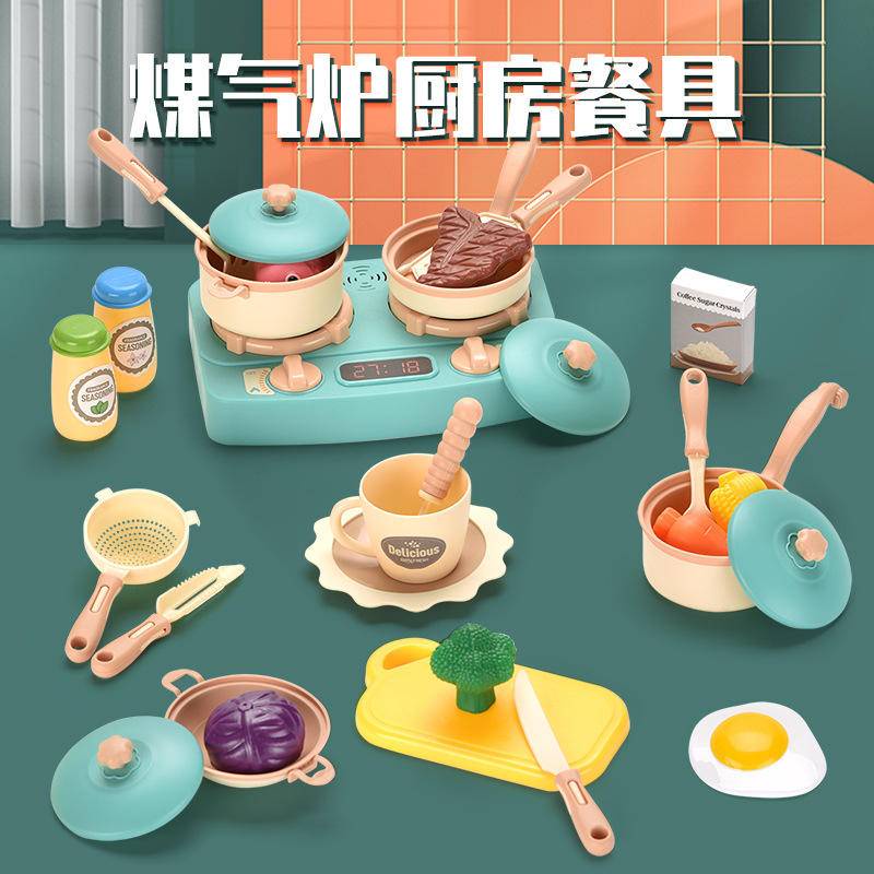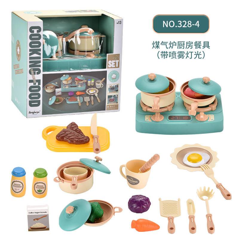 [Prince's World]Children's Simulation Kitchen Toy Set Baby Cooking Toys Gas Stove Kitchen Cutlery (with Spray Light)