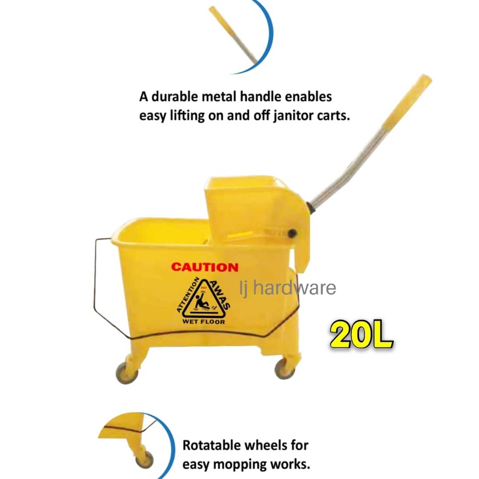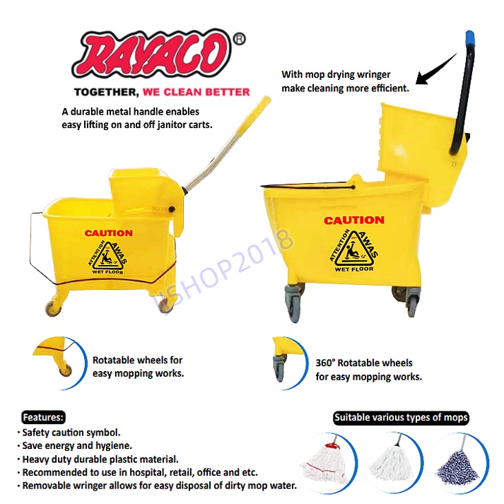 <<RAYACO>>Heavy Duty Commercial Mop Bucket with Wringer 32 Liters Squeeze Type Commercial Mop Bucket on Wheels Baldi Mop