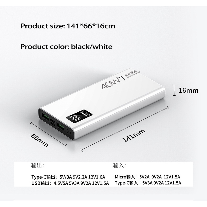 [READY STOCK] 40W Power Bank 30000mAh Powerbank Super Fast Charging mini powerbank Power Charger