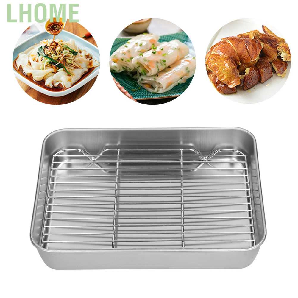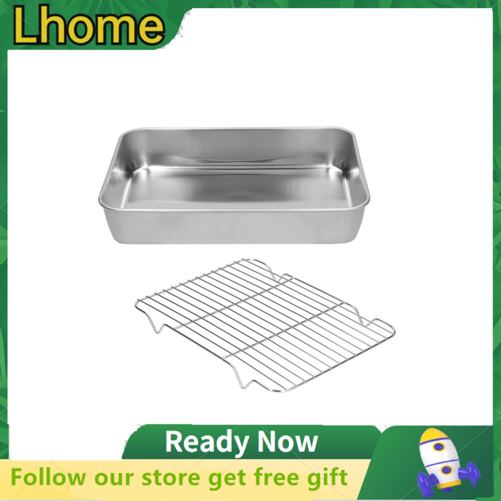????READY STOCK????Lhome Roasting Pan and Rack Set Stainless Steel Easy Clean Rectangular Roaster with for Cooking Baking Oven Tray Dish Grill Cooling Barbecue Sheet BBQ Plate Draining Oil