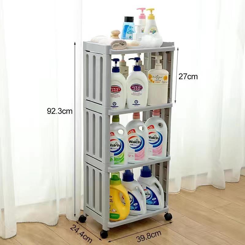 [READY STOCK] Multifunctional Storage Rack Trolley Bathroom Kitchen Shelf Movable With Wheels Toilet Slim Narrow Trolley