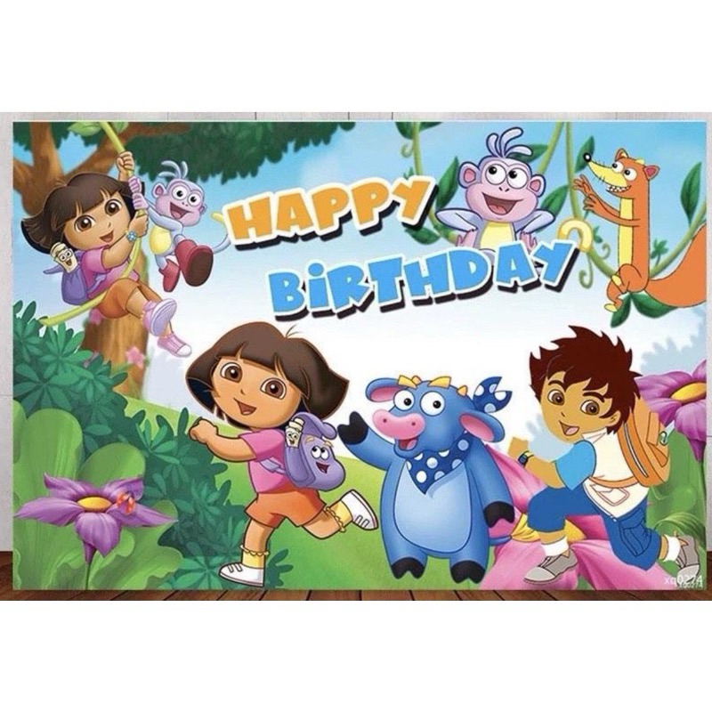 [Ready Stock] Dora the Explorer Happy birthday banner backdrop ~ Party Deco.