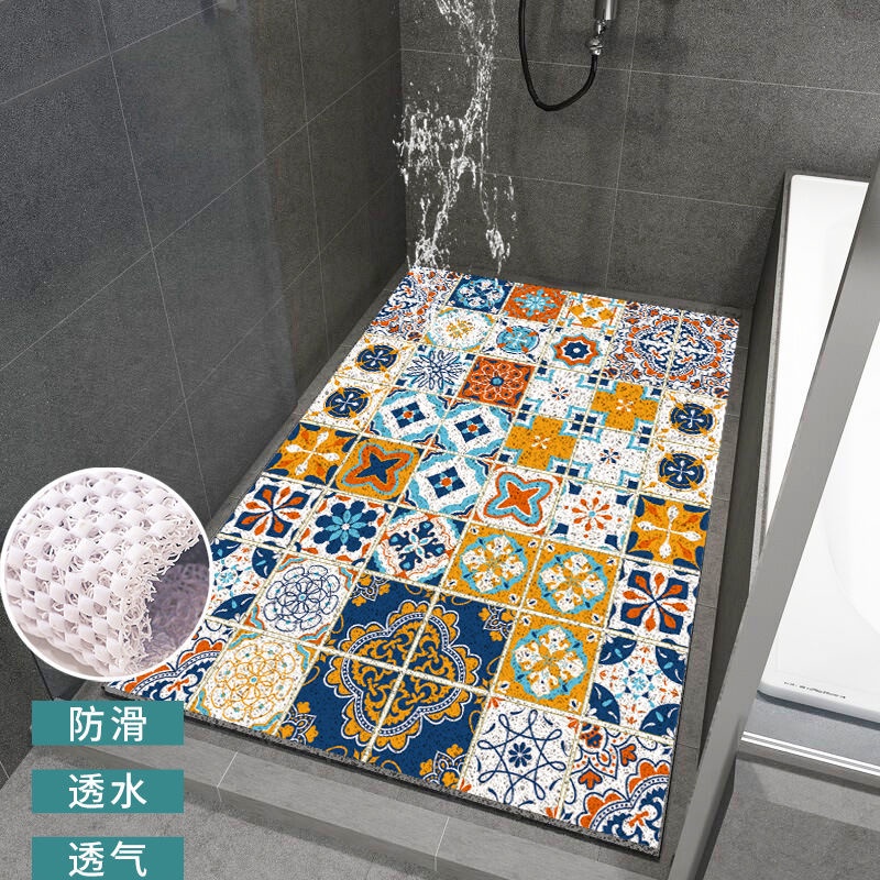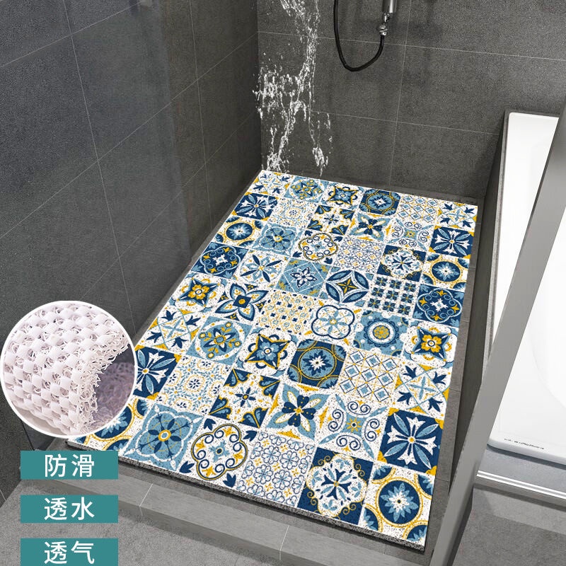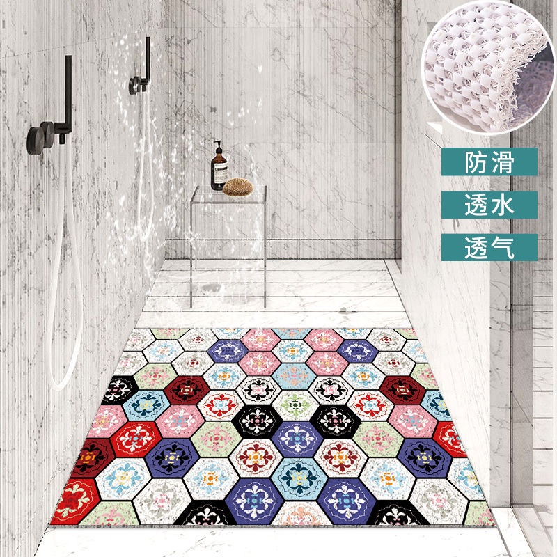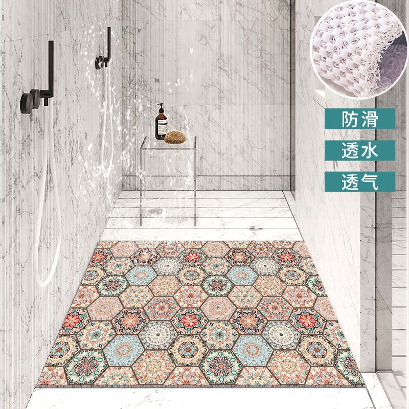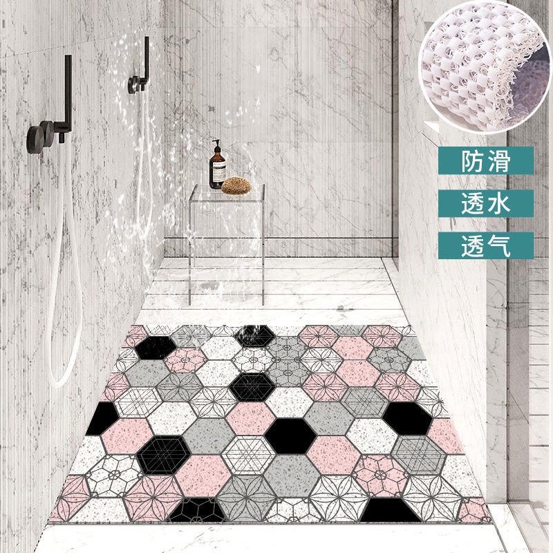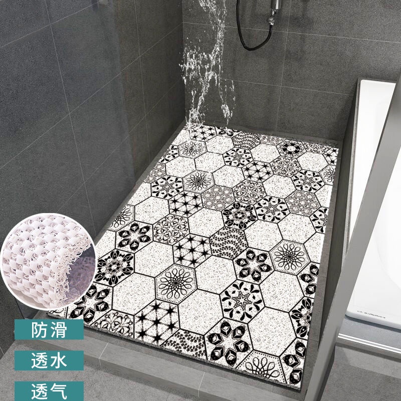 [Ready Stock Fast Shipping] ins Bathroom Door Mat Tile Silk Ring Floor Mat Shower Room Hollow Bath Foot Mat Permeable Anti-slip Plastic pvc Soft Mat Anti-slip Toilet Toilet Can Be Customized Cut