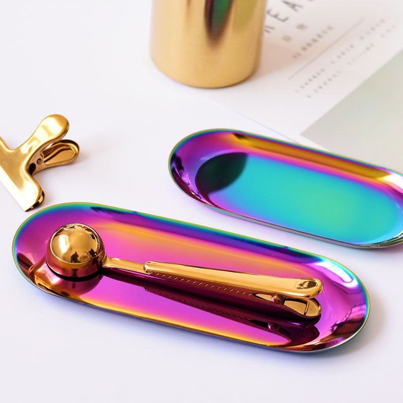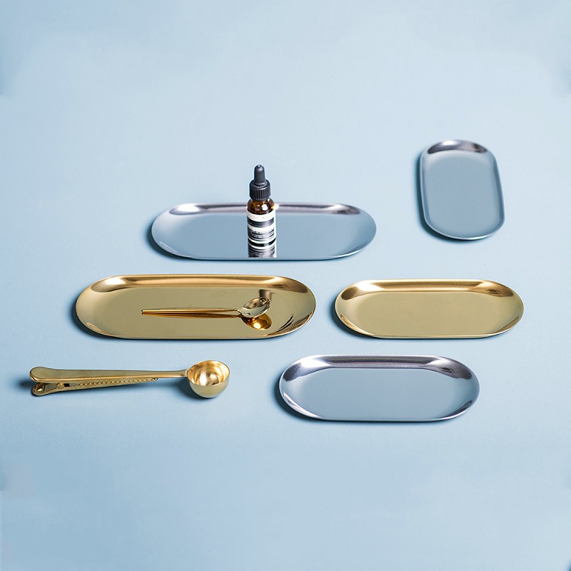 [Ready Stock] Golden Stainless Steel Storage Tray Luxurious Brass Gold Oval Plate Metal Breakfast Fruit Plate Dessert Snack Jewelry Display Tray