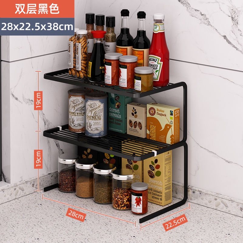 [Ready Stock] Kitchen shelf: household double deck kitchen utensils, microwave oven storage rack, table top dressing rack, multi-functional cabinet