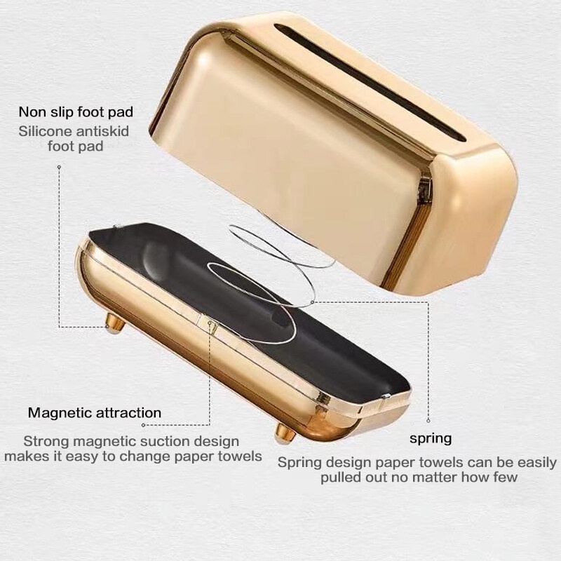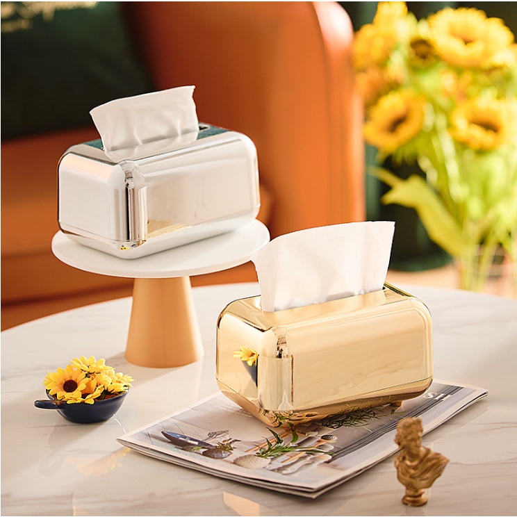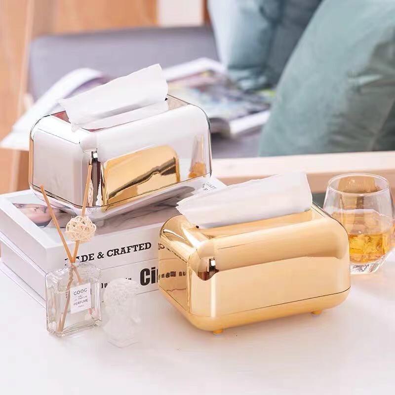 [Ready Stock] Luxurious Elegant Metallic Gold Silver Tissue Box Tabletop Napkin Holder