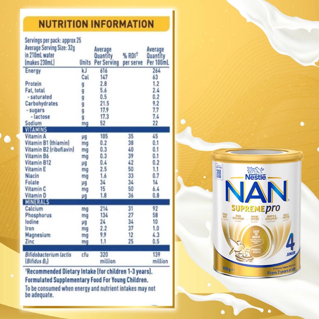 [Ready Stock] Nestle NAN Supreme Pro 4 (800g) SupremePro From 2+ Year Formula Milk Powder Stage 4 (Exp: June 2027)