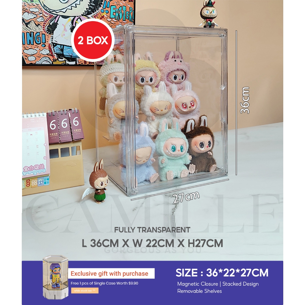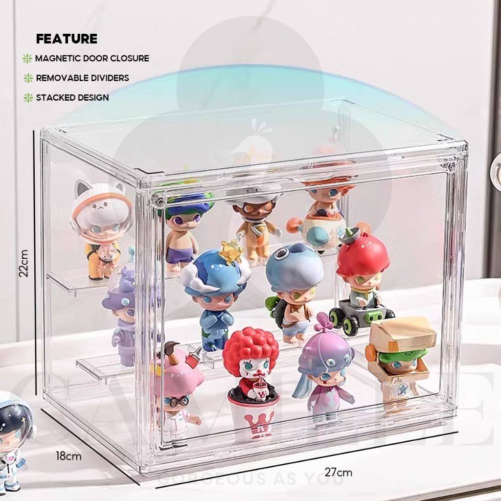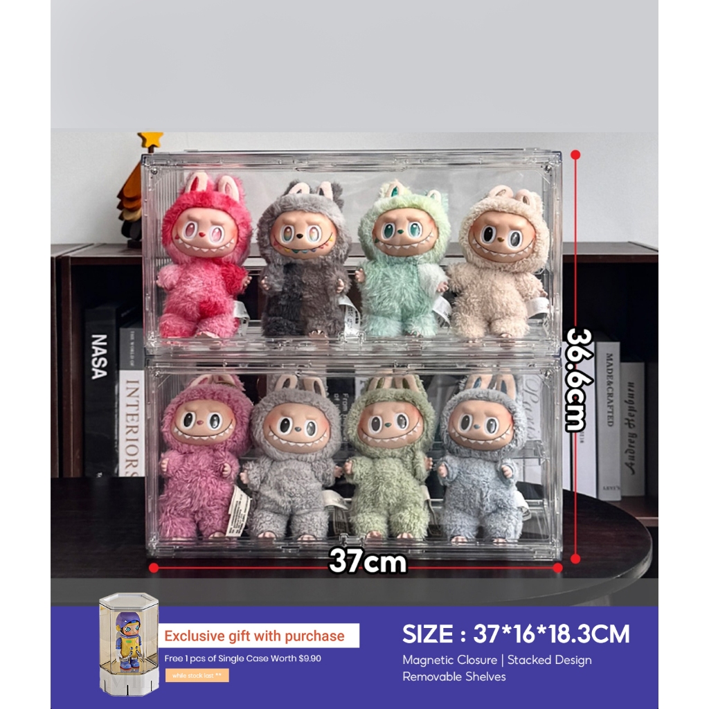 Acrylic Display Box For Popmart Labubu Blind Box Removable Shelves Stackable Magnetic Door