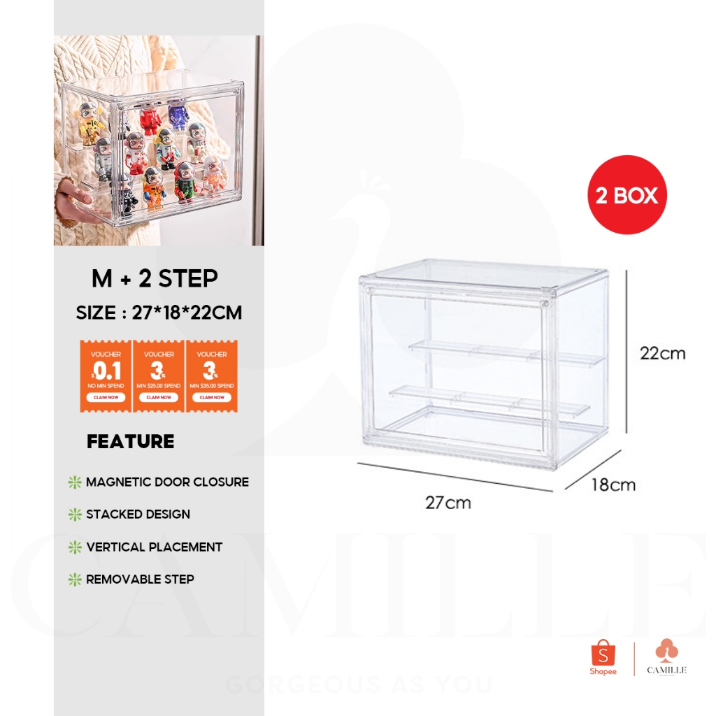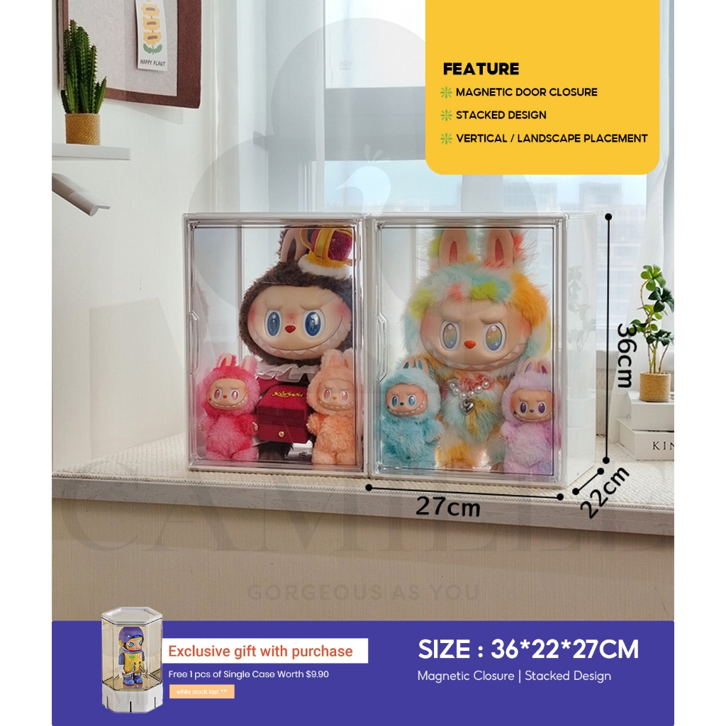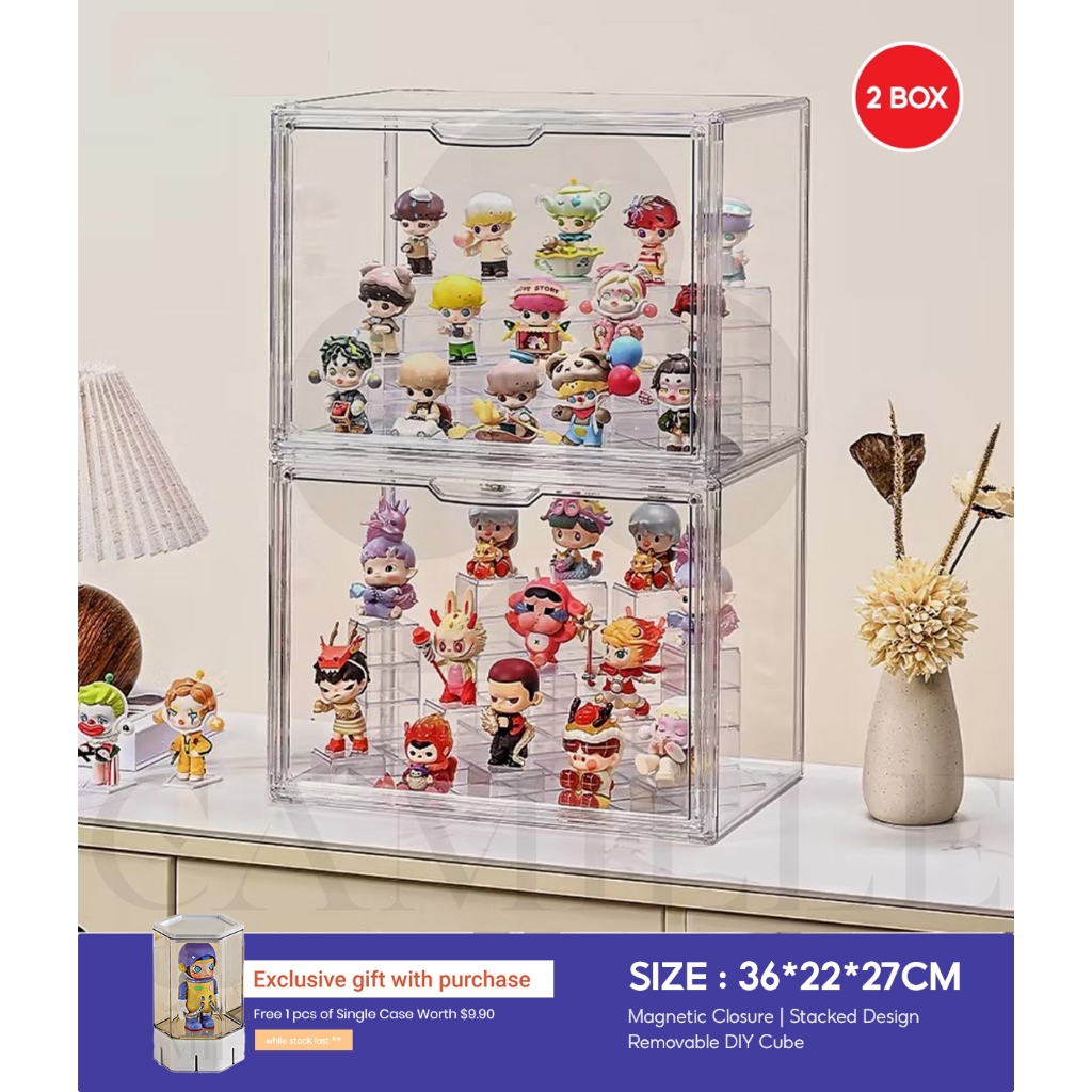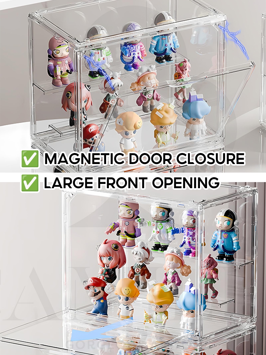 Acrylic Display Box For Popmart Labubu Blind Box Removable Shelves Stackable Magnetic Door