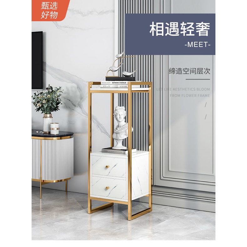 [Ready Stock] Side table floor shelf storage cabinet simple sofa Nordic living room sideboard with drawers bedroom display stand