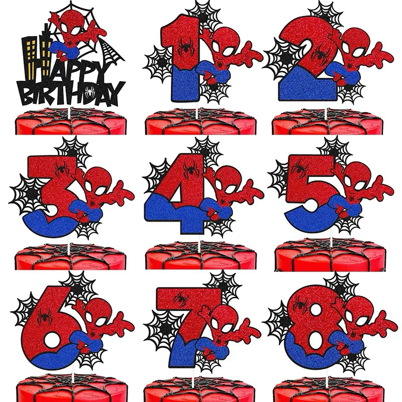[Ready Stock] Superhero Spiderman Glitters Number Cake Topper ~ Available Number # 4~9 ( per PCS)
