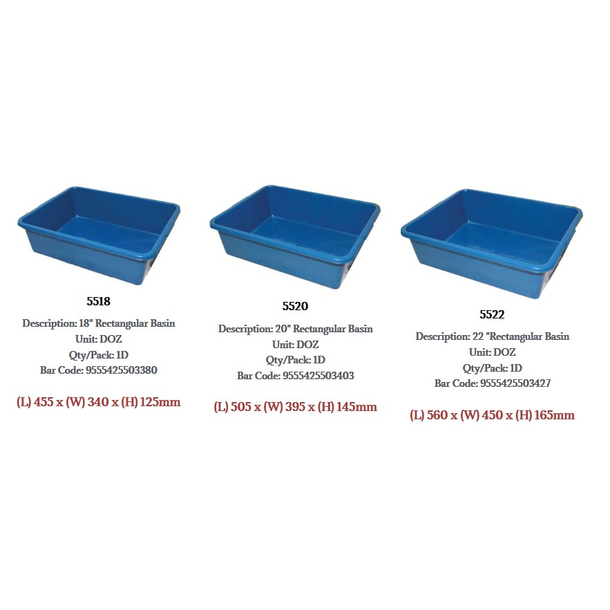 < >Rectangular Tray / Rectangular Basin / Tray Segi Empat / Food Tray / Water Tray CSK 5522/Basin Cat Litter Storage Box Basket