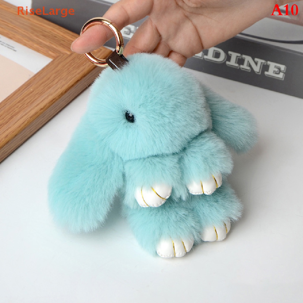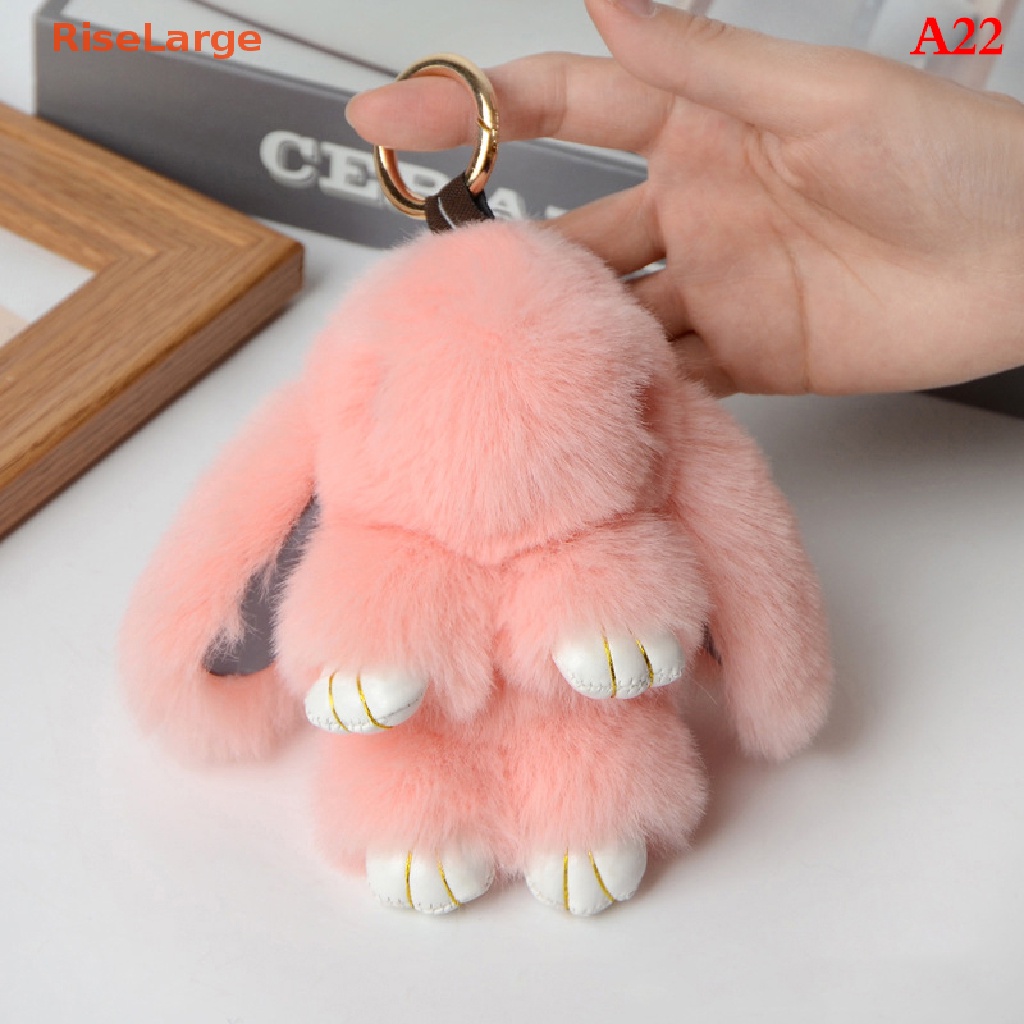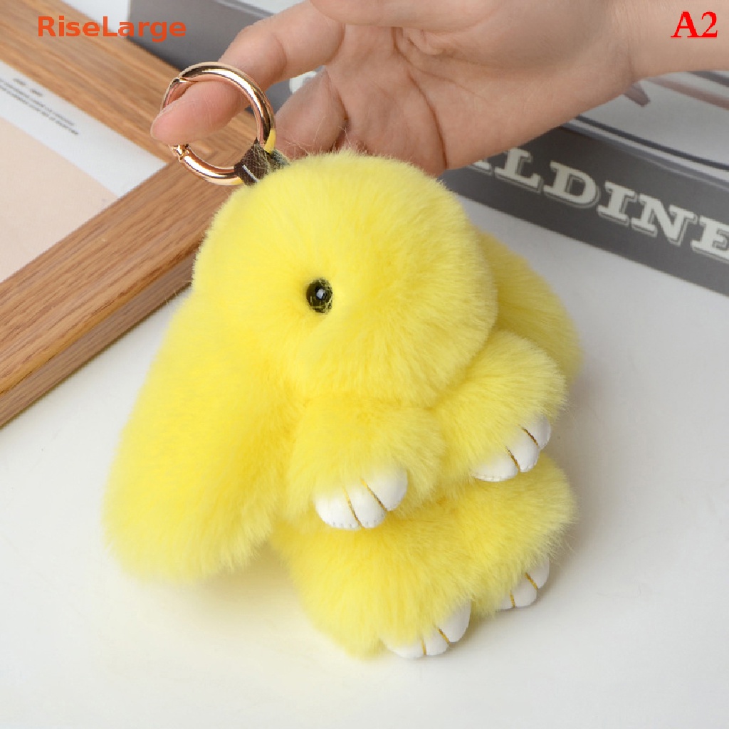 [RiseLarge] Rabbit Keychain Ring Fluffy Real Fur Pompon Bunny Trinket Key Chain Charm Cute Key Ring On Bag Car Key Pendant