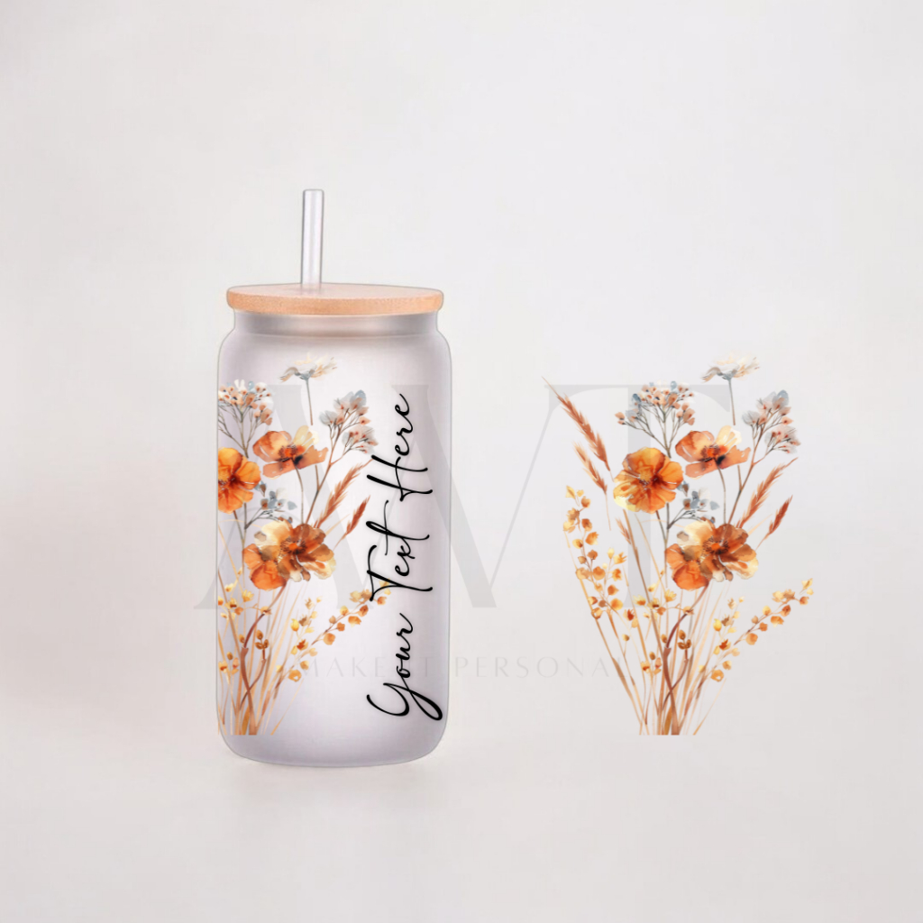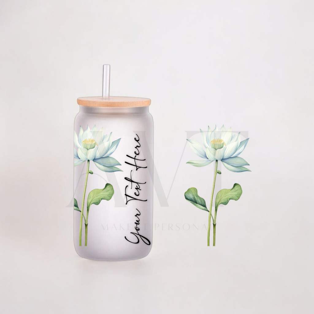 [SAME DAY SHIP] SG Personalised Customised Custom Glass Cup with Straw Lid Mug Birth Flower Name Drinkware