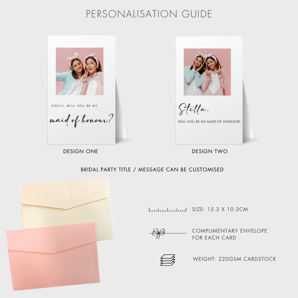 [SAME DAY SHIP] SG Personalised Customised Bridesmaid Bridal Party Squad Photo Wedding Proposal Cards Dual Side Message