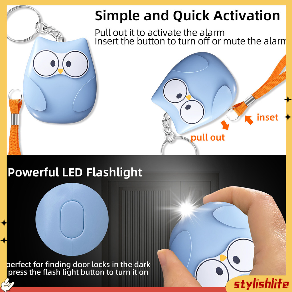[SE] Personal Alarm Keychain Personal Safety Device Portable Self-defense Alarm Keychain with Led Light Loud Sound Safety Alarm for Emergency Cute Design Ideal for Southeast