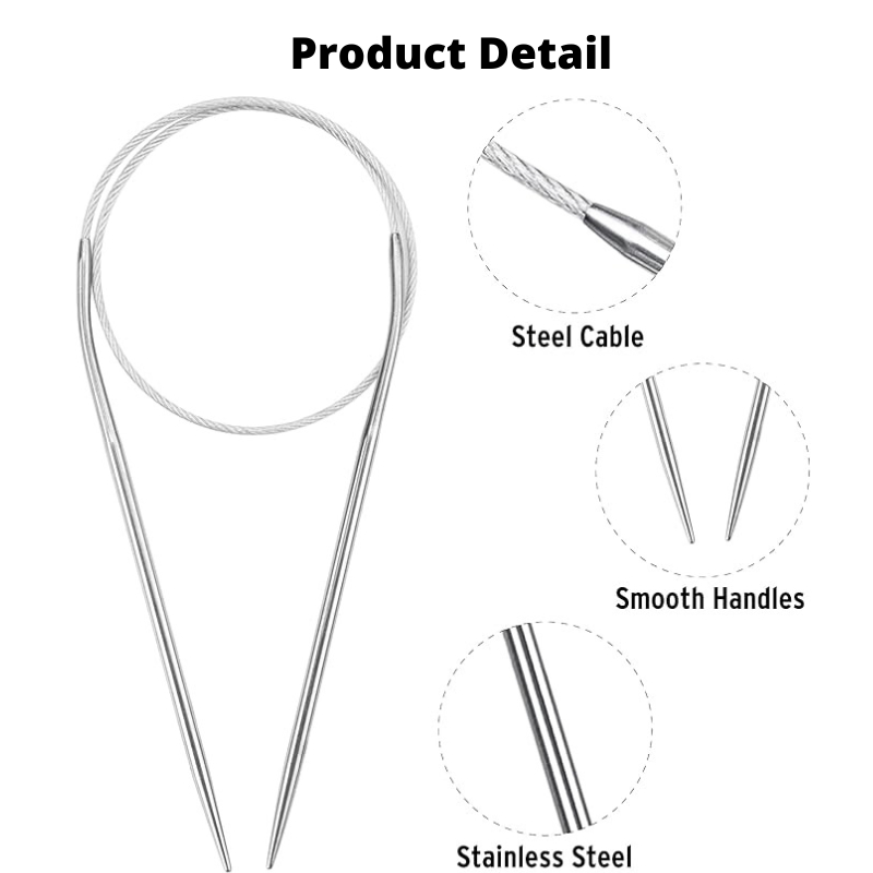 {SG} 100cm Circular Knitting Needles Stainless Steel Weaving Needles Pins for Beginners Adults 4mm to 8mm Crochet Hook