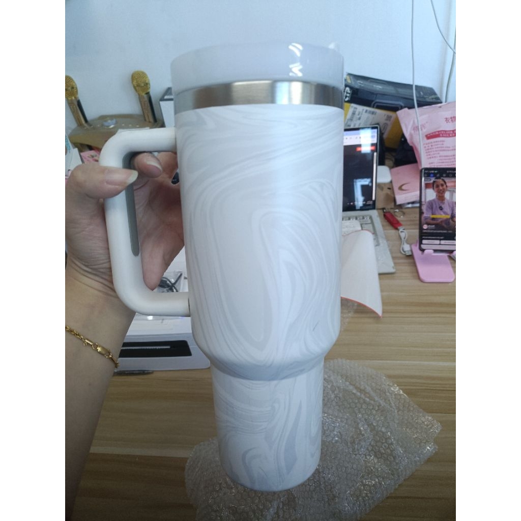 [SG] 1200ml 40oz Stainless Steel Thermal Cup Tumbler Side Handle & Straw Large Big Vacuum Double Insulated Mug Stanley