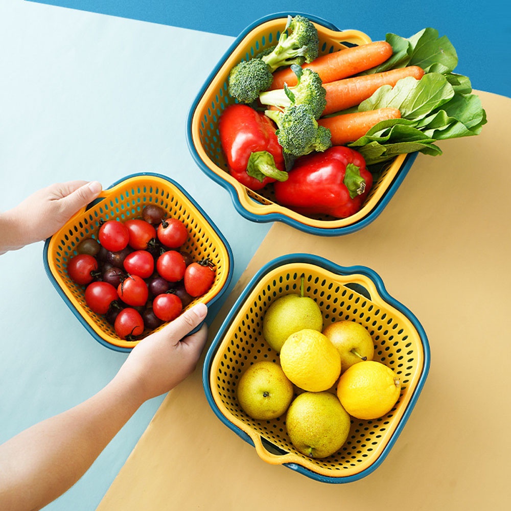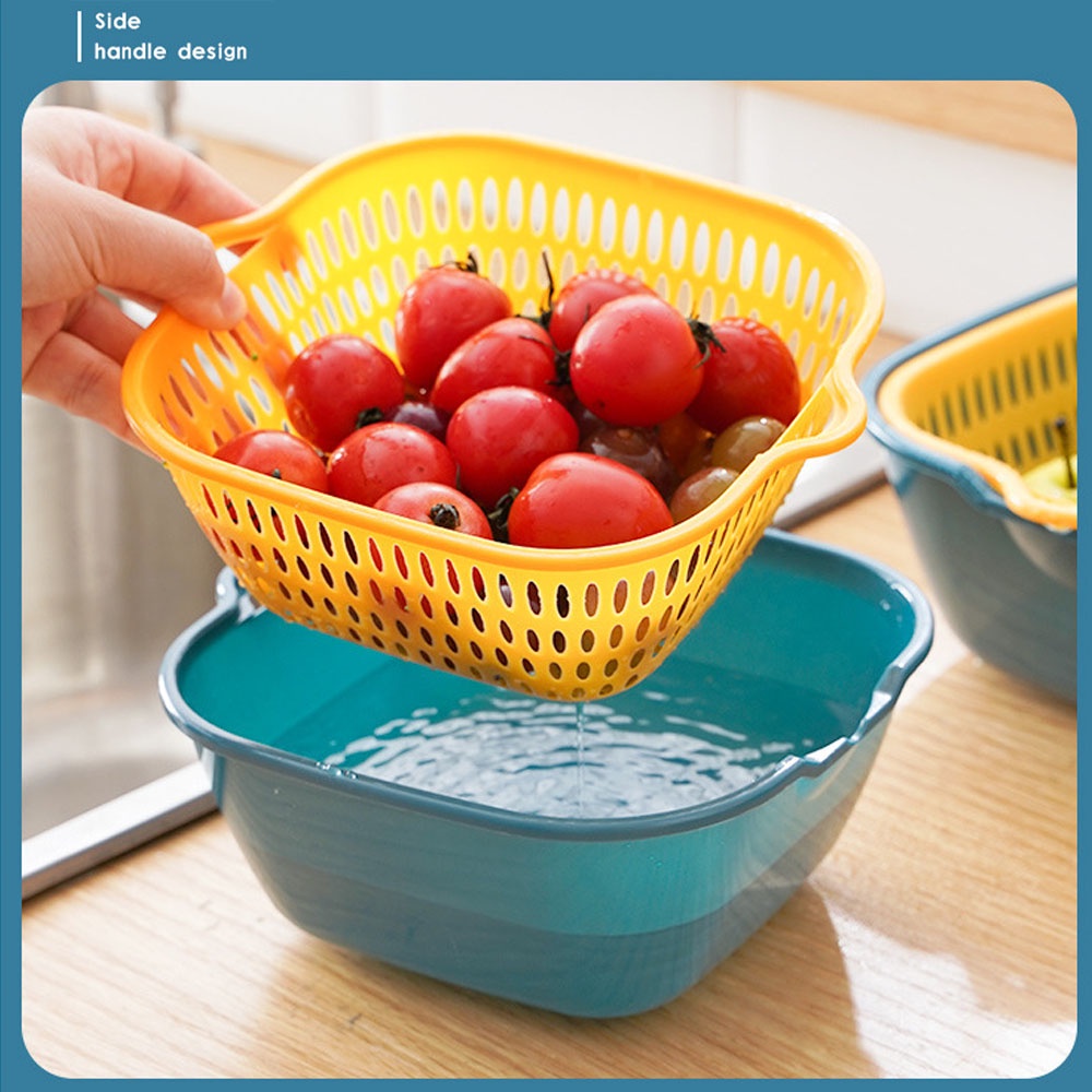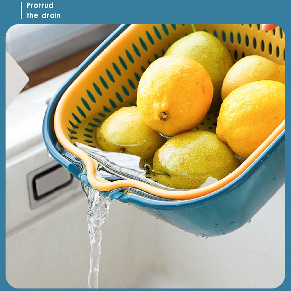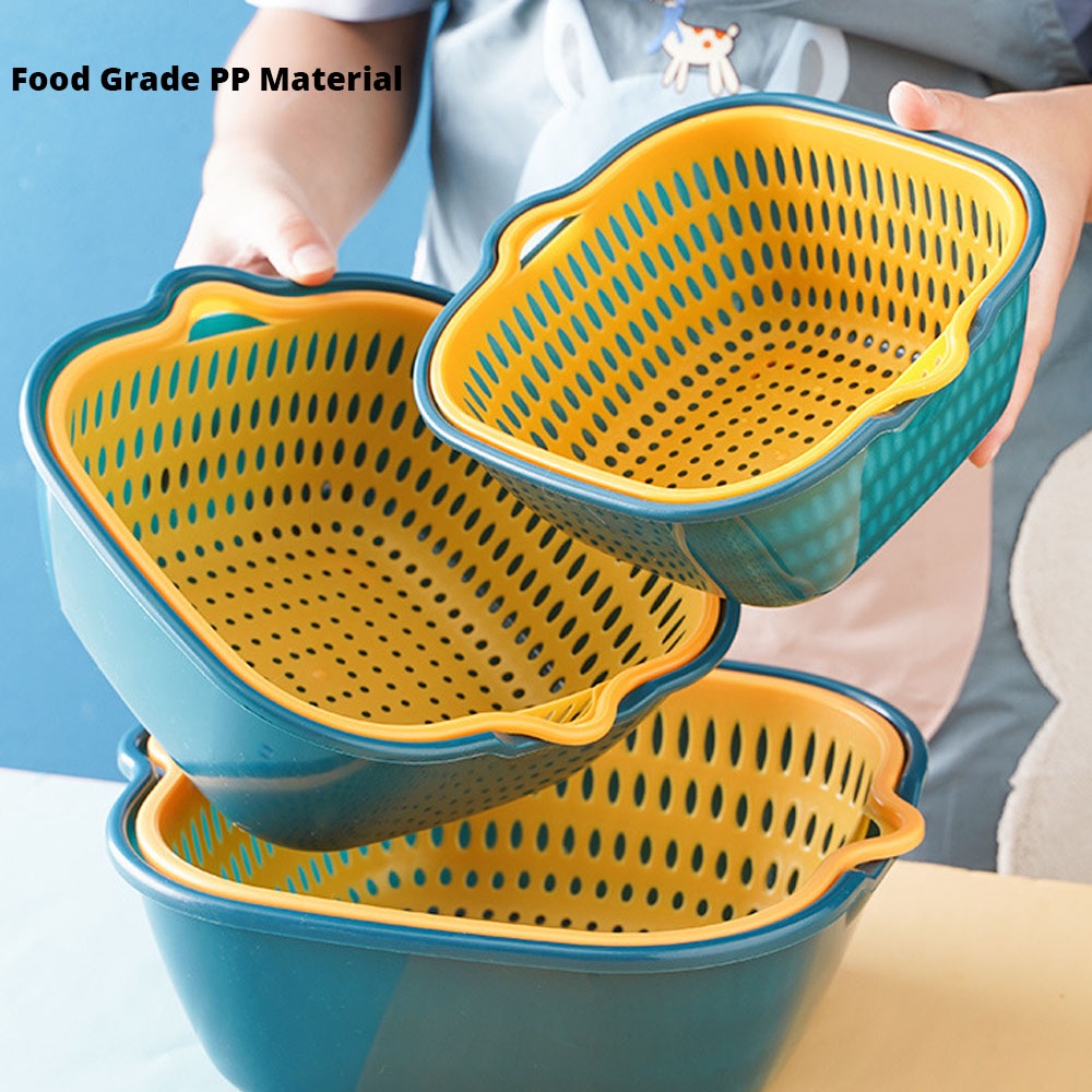 {SG} 2-in-1 Kitchen Drain Basket Strainer Basket Large Vegetable Strainer Double-layer Drainer Basin for Fruits Vegetabl